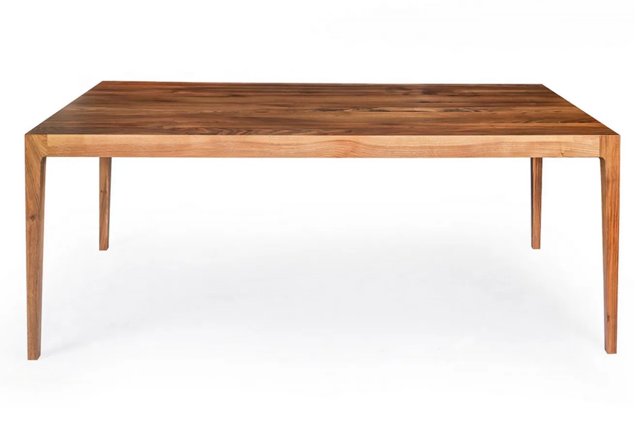 Das sehr begehrte Möbelholz, nämlich die europäische Nuss, haben wir verwendet, um aus diesem einen kompletten Tisch herzustellen. Mit den Maßen Breite 80cm, Tiefe 120 und Höhe 76cm eignet sich der Tisch aus Holz perfekt nicht nur ins Esszimmer, sondern auch als Schreibtisch im Arbeitszimmer. Das Massivholzmöbel hat eine geölte Oberfläche und vier Beine. Das mittelschwere-schwere Produkt hat eine sehr besondere Maserung und lässt sich mit einem trockenen Tuch reinigen.
