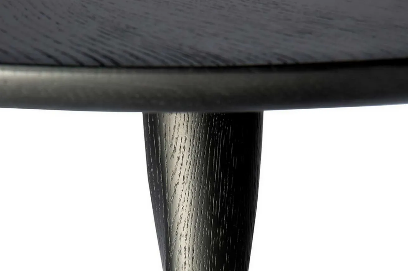 Zu geselligen Runden lädt der runde Küchentisch Torsion ein. Mit seiner schwarzen Lackierung zieht er in einer hellen Küche alle Blicke auf sich. Das aus massivem Eichenholz bestehende Möbelstück hat einen Durchmesser von 127cm und bietet Platz für vier Personen. Mit einer Höhe von 76cm ist Torsion weder zu niedrig noch zu hoch, um das gemeinsame Essen daran auszurichten oder Brettspiele zu spielen. Mit den passenden Möbeln zum Sitzen wie drehbaren Stühlen mit Armlehnen kann der Abend in vollen Zügen genossen werden. Und wenn Torsion mal nicht in Gebrauch ist, kann in die Mitte eine skulpturale Vase samt Blümchen den Tisch verschönern.