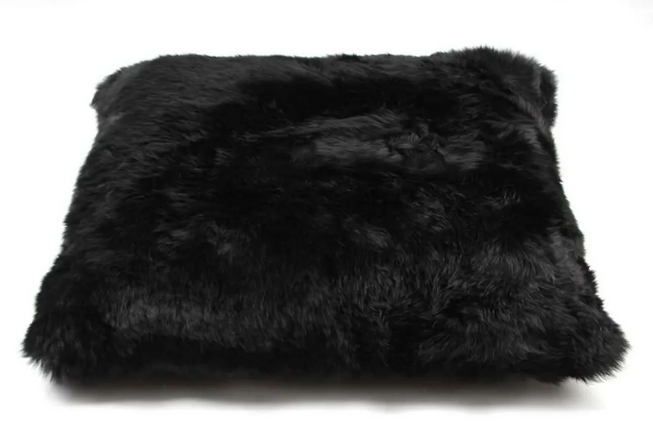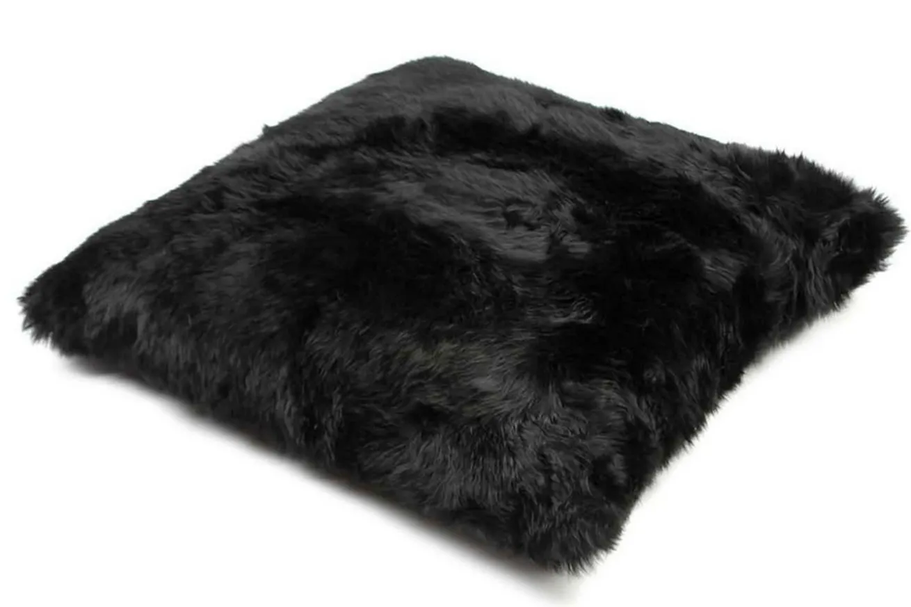 Kissen aus Lammfell mit Füllung in schwarz