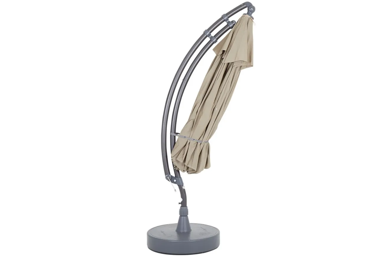 Easy Sun ist ein beeindruckender hängender Sonnenschirm mit einem Durchmesser von 3,75 m. Aluminiumständer und strapazierfähiges Olefin-Baldachin mit Belüftungsöffnung. Leicht zu öffnen und zu schließen mit der Kurbel. Der Fuß kann mit Sand und/oder Wasser gefüllt werden, um Stabilität zu gewährleisten.