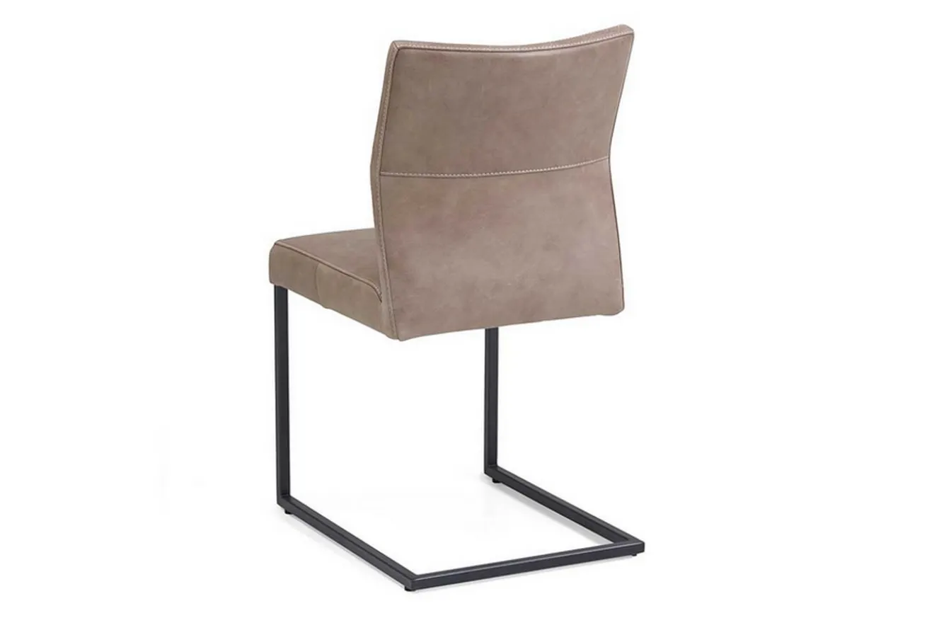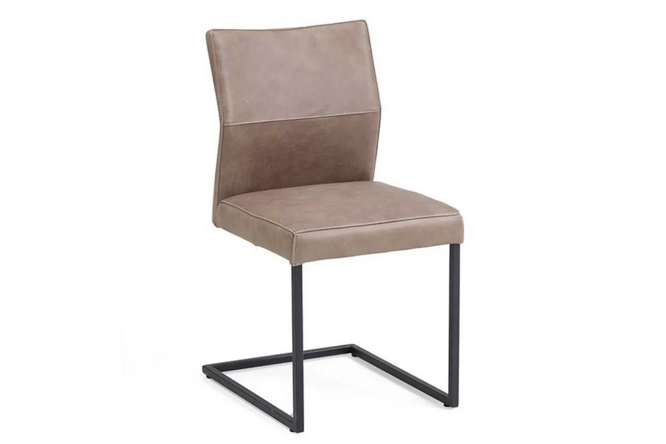 Durch seine akzentuiert unaufdringliche Gestaltung und der edlen Farbwirkung gibt der Esszimmerstuhl jedem Wohnraum ein klassisches, stilvolles Flair. Ein schwarz pulverbeschichtetes Edelstahlgestell trägt ein mit weichem Leder in angesagtem Oliveton bezogenes Sitzelement. Das belastbare und leicht zu pflegende Leder sorgt dank der warmen und strapazierfähigen Aufmachung für ein besonderes Hautgefühl. Das Produkt hat eine Breite von 46cm, eine Höhe von 88cm sowie eine Tiefe von 58cm. Der freischwingende Ständer und die leichte Form der Sitzfläche und Rückenlehne offerieren nicht nur den besten Sitzkomfort, aber auch den einprägsamen Stil beliebter Stuhlklassiker legendärer Designepochen auf elegante Weise. Als Folge haben Sie mit dem Modell ein Einrichtungselement, das sich in jede Konzeption des Innendesigns geschmackvoll einfügen lässt. Es fügt sich in ein Esszimmer mit Massivholztisch genauso ästhetisch ein wie in ein Milieu mit Retro-Lieblingsstücken oder Möbeln im Industrial Stil.