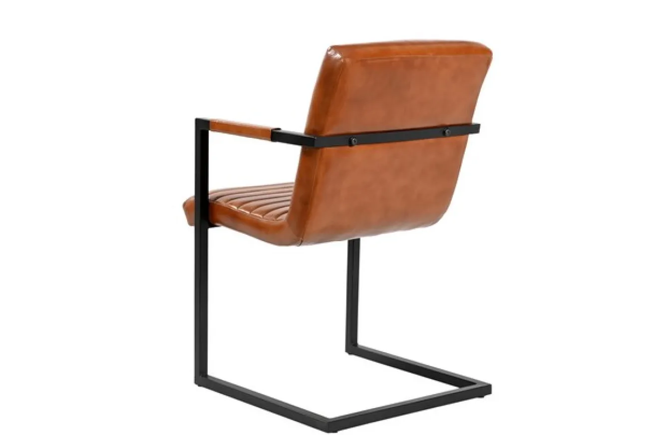 Unser Freischwinger im Industrial Look ist ein Meisterwerk der modernen Designästhetik und Funktionalität. Mit seinem auffälligen schwarz gerippten Lederkorpus und dem robusten schwarzen Gestell erfüllt dieser Stuhl höchste Ansprüche an Stil und Komfort.