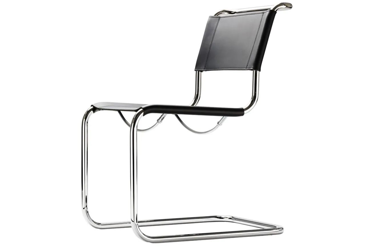 Kubische Form, klare Gestalt, feine Proportionen, schwingende Bewegung: Mit den evolutionär perfektionierten Freischwingern S 33 und S 34, die zu den ersten ihrer Art gehören, verbinden sich heute Zeitgeist und Traditionsbewusstsein. „Warum vier Beine, wenn zwei ausreichen“, schrieb der Künstler Kurt Schwitters 1927, als er die ersten Freischwinger der Möbelgeschichte erblickte. Die beiden Stühle S 33 und S 34 sorgten bei der 1927 eröffneten Werkbundausstellung auf dem Weißenhof in Stuttgart für viel Aufsehen. Bereits ab 1925 hatte Mart Stam mit dünnen Gasleitungsrohren experimentiert, deren Winkel er zunächst mit Flanschen verband, wie sie Klempner verwenden. Als Weiterentwicklung schuf Stam das Prinzip frei kragender Stühle, die nicht mehr auf vier Beinen ruhten – ein Konstruktionsprinzip, das in seiner formalen Zurückhaltung zu einem wichtigen Baustein in der Geschichte des modernen Möbeldesigns wurde. Seine Freischwinger S 33 und S 34 waren mehr als nur sachlich gestaltete Einrichtungsgegenstände, sie gehörten zum revolutionären Gesamtkonzept einer neuen Architektur- und Lebensauffassung.