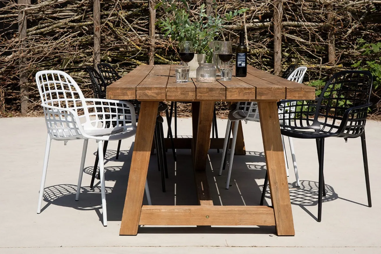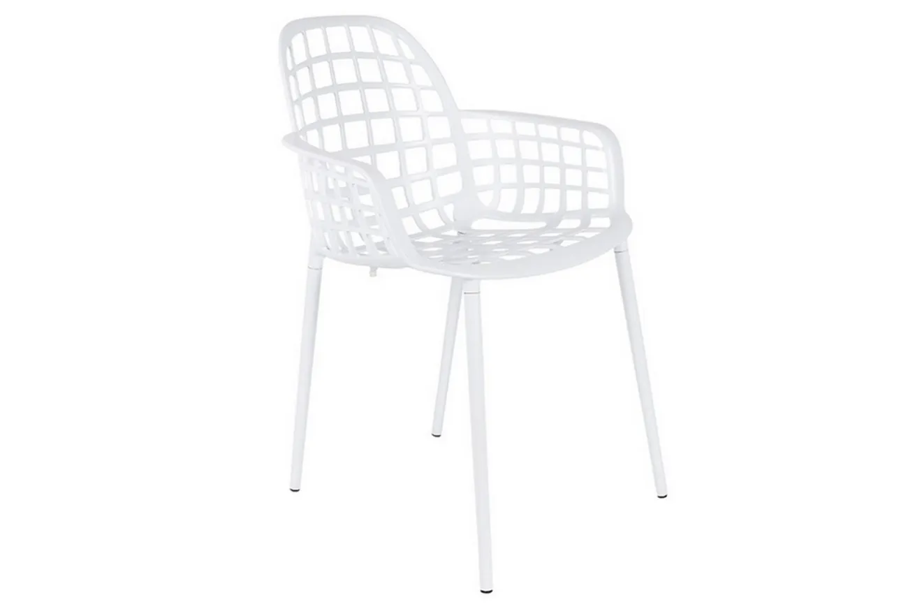 Ein Gartenstuhl, der nicht aus Holz ist, passt trotzdem gut in Ihren Outdoorbereich. Mit seiner weißen Farbe finden Sie den Armlehnstuhl auch zwischen den grünsten und größten Pflanzen wieder. Das Produkt ist aus pulverbeschichtetem Aluminium. Es hat eine Höhe von 82,5cm sowie eine Breite und Tiefe von je 59,5cm. Wenn Sie allerdings keinen Garten oder keine Terrasse besitzen, können Sie den Armlehnstuhl auch in Ihrem Esszimmer verwenden. Obwohl es sich um keinen Polsterstuhl handelt, wird das Möbelstück mit dem passenden Kissen zum gemütlichen Esszimmerstuhl im Handumdrehen.