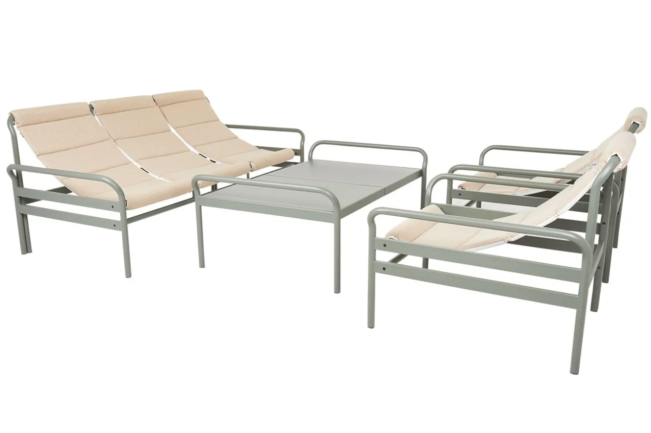 Die Sling-Serie besticht durch ihre Form, die für Gesprächsstoff sorgen wird. Ein weiches und rundes Design, das auf spielerische Weise die Atmosphäre des Sommers einfängt. Die geschwungenen Kissen sind nicht nur eine stilvolle Ergänzung zum Rahmen, sondern bieten auch unglaublichen Sitzkomfort. Die Serie umfasst einen Armsessel, ein Sofa und einen Couchtisch.