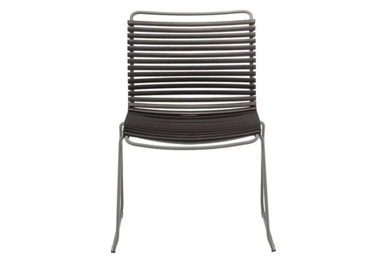 Der körpergerecht ausgeklügelte Gartenstuhl „Click“ des Labels Houe fasziniert mit bunter Optik und schlanker Formensprache.Sitz sowie Lehne bestehen aus durchgehendem Kunststoff. Die einzelnen Lamellen haben genügend Abstand zueinander, so dass sie aussehen wie Rolladen-Lamellen, durch die man hindurchschauen kann. Allerdings dient diese Aufmachung hier nicht zum Stalken, sondern für das Regenwasser, das hindurchfließen kann. Befestigt auf und getragen wird das Ganze von einem grauen Metallgestell, dem zwei Beine entspringen, die trapezförmig angeordnet sind. Dadurch sieht der Stuhl nicht aus wie ein normaler Gartenstuhl, sondern hat ein besonderes Design und wird in modernen Gärten zum echten Hingucker. Sie können zudem die Stühle bei Nichtgebrauch raumsparend stapeln.