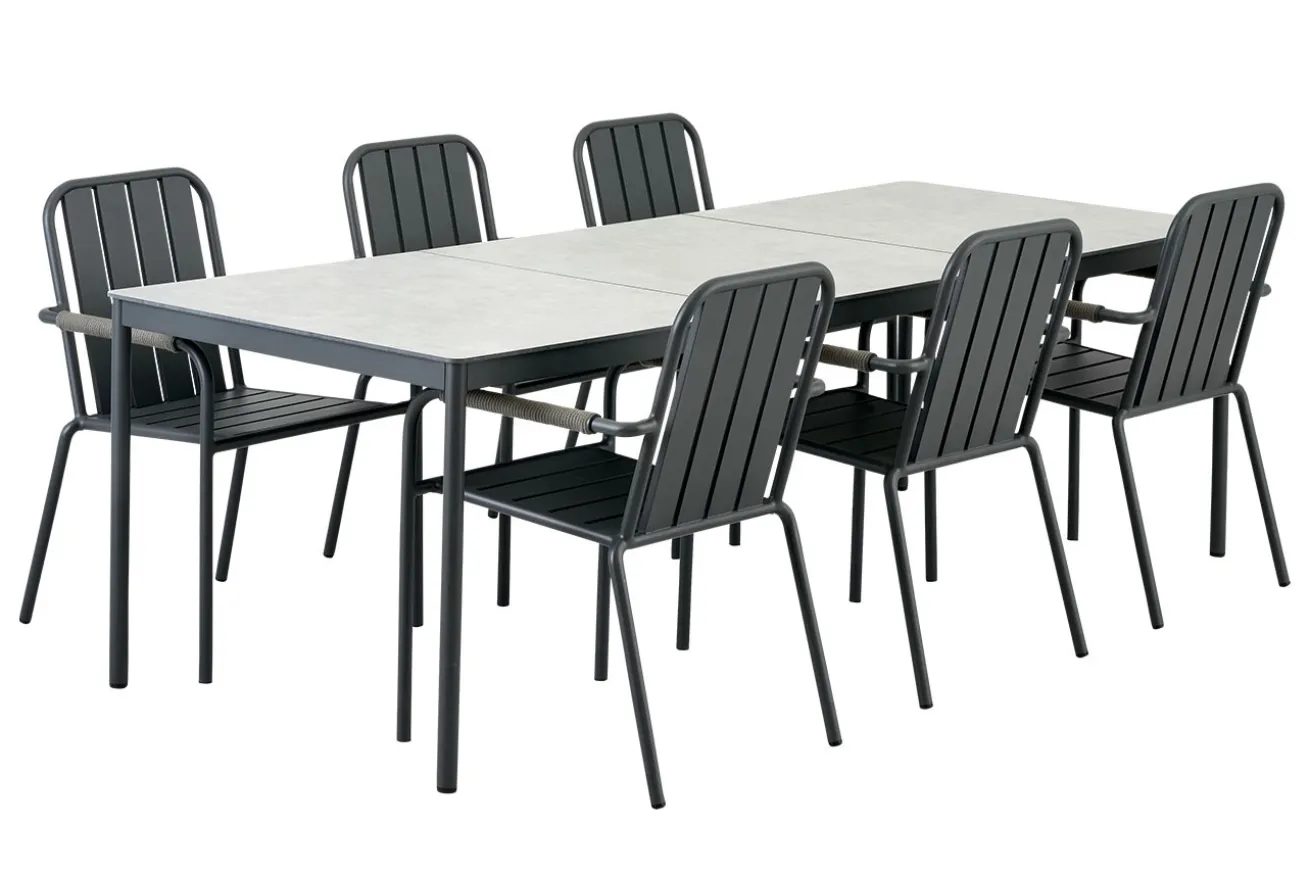 Für fünf Minuten das gute Wetter draußen genießen und im Lieblingsmagazin blättern geht am Besten auf Innes, dem stapelbaren Gartenstuhl aus Aluminium in grau. Der moderne Outdoor-Stuhl für jede Räumlichkeit, sei es Terrasse, Balkon oder Garten, zeichnet sich durch seine schlichten Kurven aus. Ein Mix aus Klassik und Moderne mit einem schönen Twist, der aus gepolsterten Armlehnen mit umwickelten Seil besteht, das ist Innes. Was mehr erwartet man von einem Möbelstück zum Sitzen, das hervorragend in die grüne Umgebung passt und bei Nichtgebrauch gestapelt in einer Nische stehen kann?