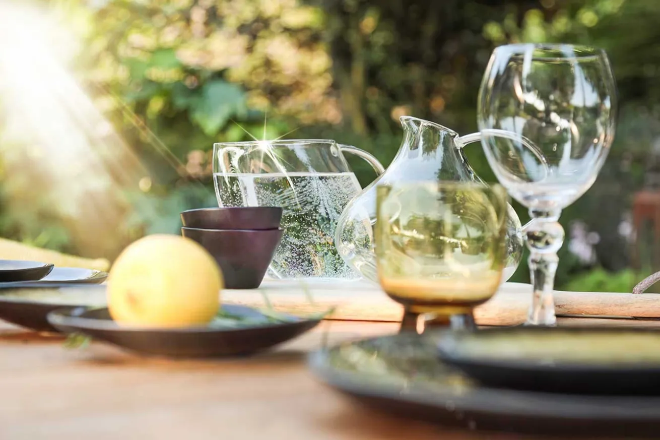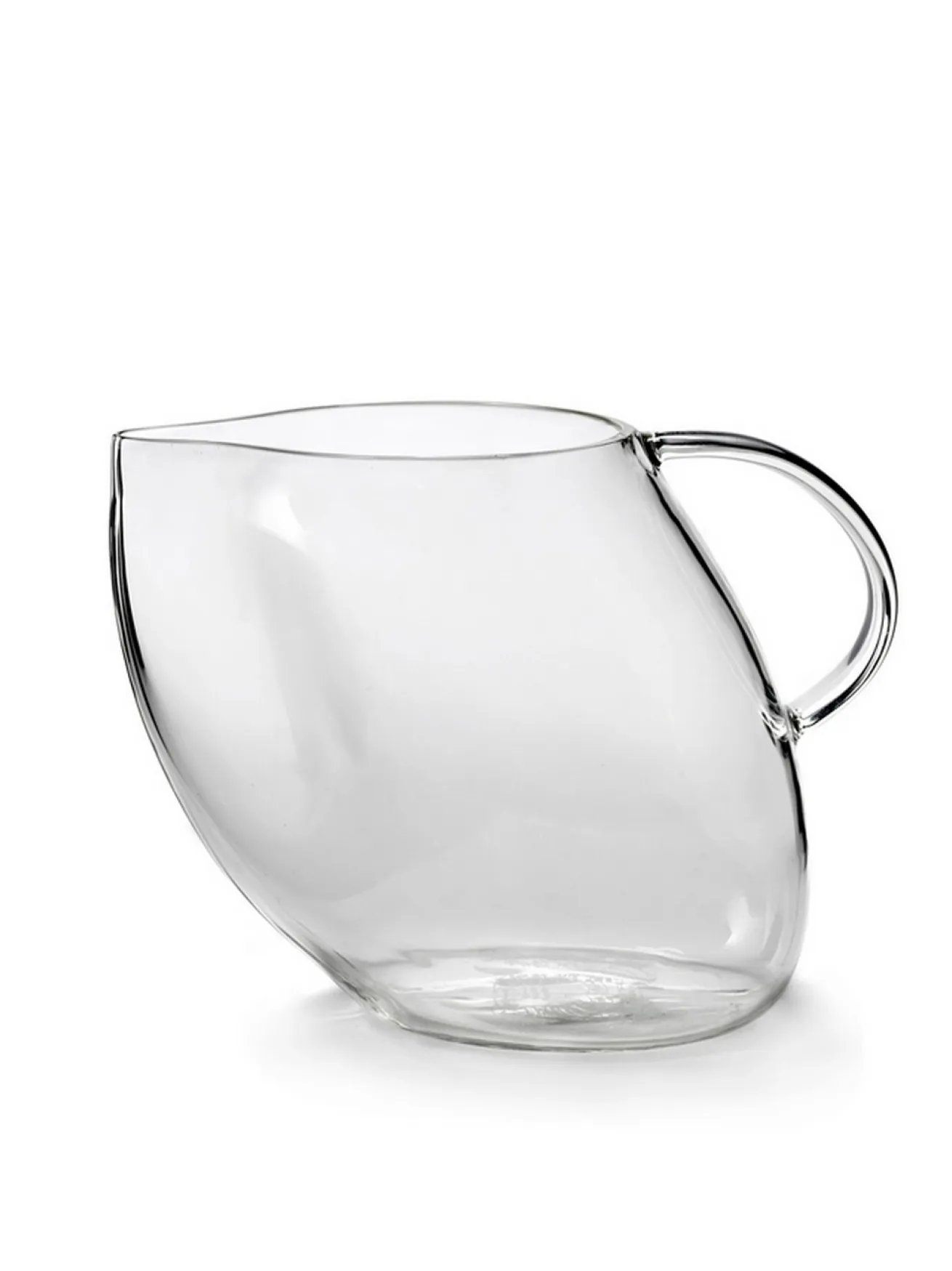 Als sichtbaren Protest gegen Standard-Karaffen, die ihr oft zu langweilig und viel zu schlicht sind, entwarf Anita Le Grelle eine Serie von Schankkrügen, die absichtlich etwas windschief sind. Und das ist auch gut so, denn obwohl die Glaskaraffen wirklich häufig gebraucht werden, sehen fast alle von ihnen gleich aus. Nicht so wie dieser hier. Mit einer Breite von 16,5cm, einer Tiefe von 11,5cm und einer Höhe von 12cm ist er groß genug, um alles Mögliche aufzubewahren. Sei es Öl, Milch oder etwas Anderes: Familie und Freunde werden die Behältnisse nicht verwechseln, denn durch das transparente Glas ist sichtbar, was sich in dieser Karaffe befindet. Nicht nur in modernen Küchen ein muss, sondern in allen, wo gerne gekocht und Wert auf Aussehen gelegt wird.