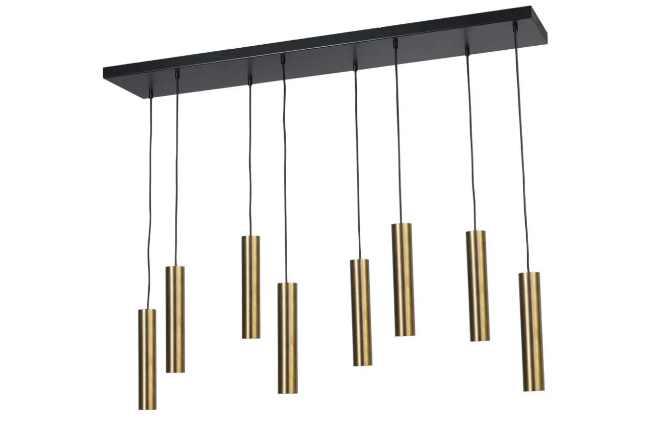 Wenn Sie Ihren Wohnraum verdunkeln und lediglich Rule ihre Arbeit machen lassen, dann erhalten Sie einen besonders tollen Effekt. Die einzelnen Leuchtkörper, die 30x5cm breit sind, hängen jeweils an einem eigenen Kabel und können pendeln. Selbst bei einem kleinen Windhauch ändern sie die Richtung des Lichts, so dass tolle Effekte auf Tisch oder Boden entstehen. Aber nicht nur deshalb ist Rule eine super Lampe. Über dem ausladenden Esszimmertisch sorgt sie für genügend Helligkeit, so dass jeder Ihrer Familienmitglieder oder Gäste sieht, was sich auf ihren Tellern befindet. Immerhin hat Rule eine Breite von 130cm und eine Tiefe von 25cm.