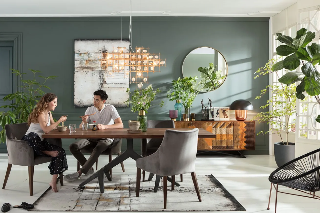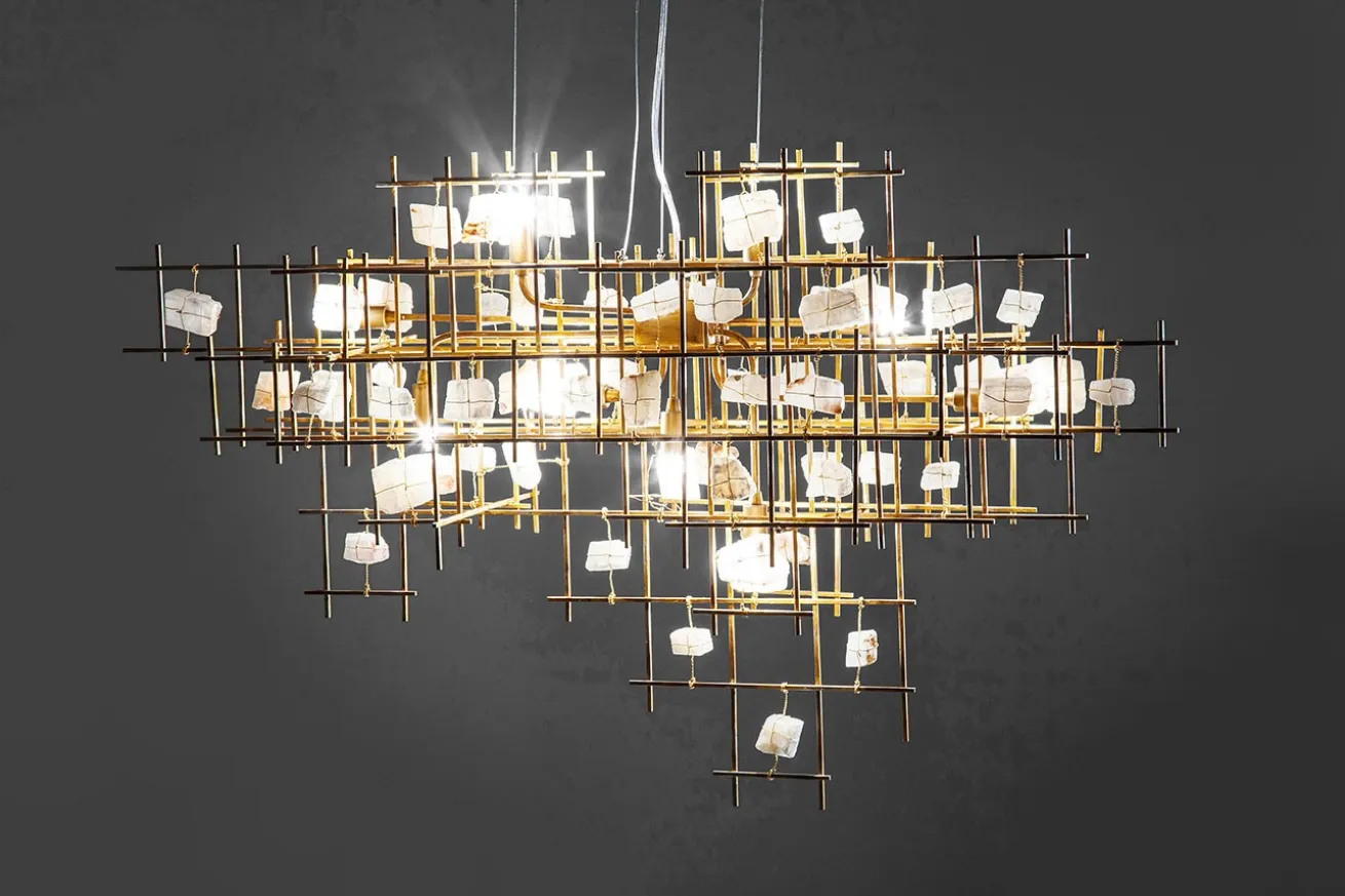 Sie neigen beim Lesen des Namens den Kopf, weil Sie sich diese Leuchte nicht vorstellen können? Dann treten Sie näher und begutachten Sie die Lampe, auch liebevoll Steinmobilé genannt und staunen Sie über die Fertigung der Esszimmerlampe, die jeden Raum, egal ob modern oder rustikal, elegant aussehen lässt. In das goldene Edelstalgestell sind Steine gefasst, die dank Draht zusammengehalten werden. Sowohl im aus- als auch angeschalteten Zustand ein echter Hingucker.