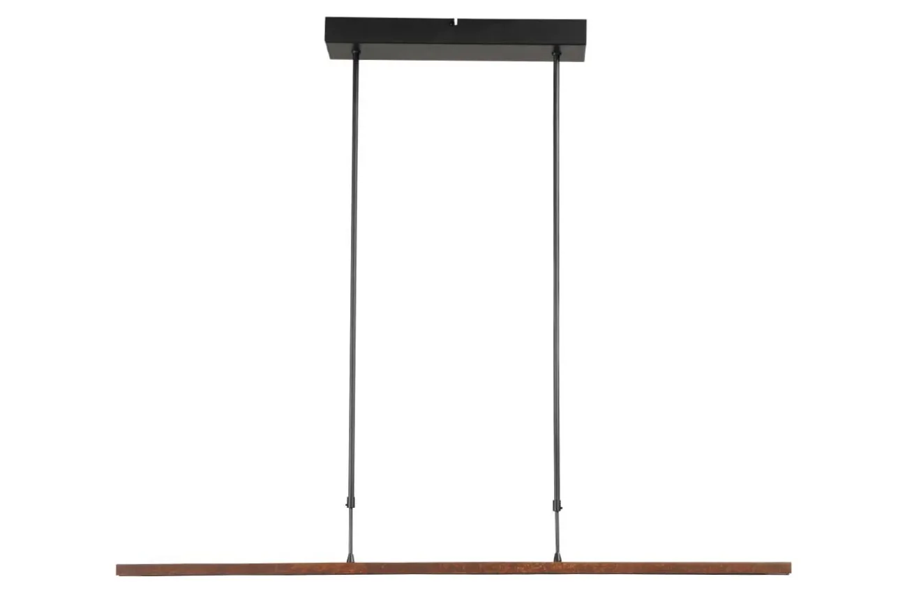 Bei dieser filigran gearbeiteten Deckenlampe im modernen Design muss man aufpassen, dass man sie nicht übersieht, wenn sie über dem Tisch hängt, schließlich hat sie lediglich eine Tiefe von 3cm und eine Breite von 100cm. Isaa wurde in Rostoptik gearbeitet und erhält so einen Industrial Touch, weshalb sie auch in eben diese Milieus hineinpasst. Und falls sie zu hell sein sollte, ist das kein Problem, da sich das Licht dimmen lässt und so für behagliche Stimmung sorgt.