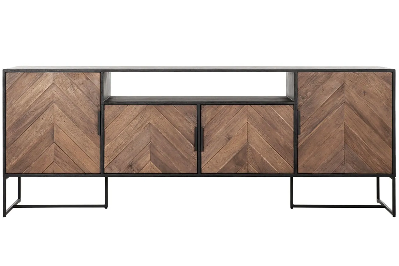 Die schwarzen Metallfüße setzen nicht nur einen stilvollen Akzent, sondern sorgen auch für Stabilität und Haltbarkeit. Sie verbinden die kulturelle Ästhetik mit modernem Design und verleihen dem Highboard eine subtile Raffinesse.