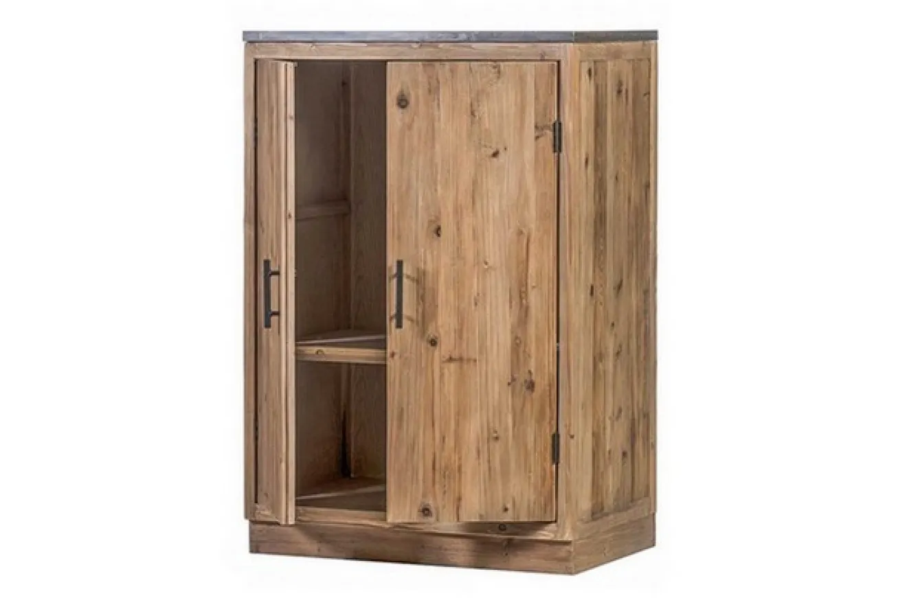 Holen Sie sich den Charme des Landhaus-Stils mit dem Luxus eines modernen Möbels auf die überdachte Terrasse oder in die Wohnung! Der 2-türige Hochschrank Nimes aus leicht grau pigmentiertem recycletem Kiefernholz macht´s möglich. Dieses Küchenmöbel ist mit zwei Türen und einem Regal ausgestattet, in dem Sie Ihr geliebtes Keramikgeschirr verstauen können. (nicht Winterfest, im Aussenbereich wird das Holz stärker Arbeiten, als im Innenbereich. Es können Spannungsrisse auftreten. Schubladen und Türen sollten in regelmäßigen Abständen überprüft und eingestellt werden)