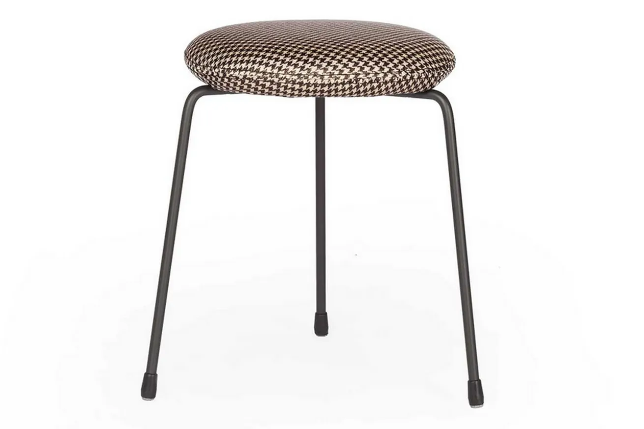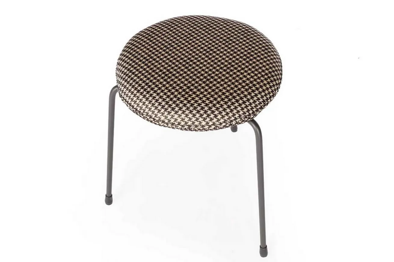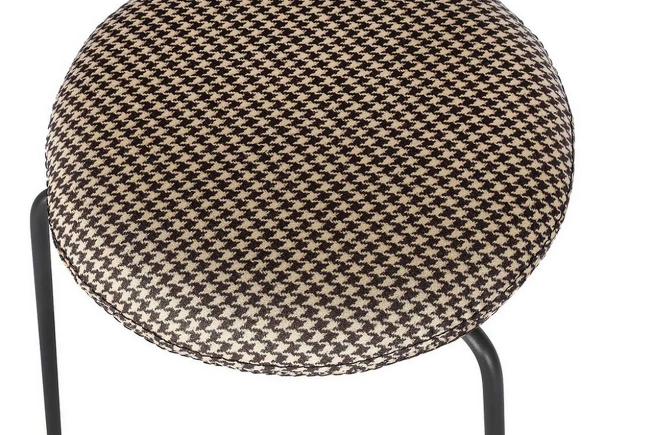 Der Hocker im neuen Look wirkt sehr viel leichter als die klassischen Modelle. Er hat die Maße Breite 38cm, Höhe 50cm und Tiefe 38cm. Drei Gründe, die für dieses Produkt sprechen, sind einmal die originelle Verbindung aus Stoff und Stahl, dann der außergewöhnliche Look und zu guter Letzt der schicke Bezug. Sitz- und Lehnfläche bestehen nämlich aus Stoff in kariertem schwarz und weißen Hahnentrittmuster, die auf einem Gestell aus schwarzem Stahlgestell befestigt sind. Die dunkle Farbe des Stahls in Kombination mit der hellen Stoffarbe ist dieser Stuhl ein außergewöhnliches Objekt, das aber in eben dieser Kombination einfach nur klasse aussieht! Der Stuhl eignet sich somit nicht nur in modernen Milieus, sondern auch in klassisch-rustikalen Einrichtungen mit dunklen Massivholzmöbeln.