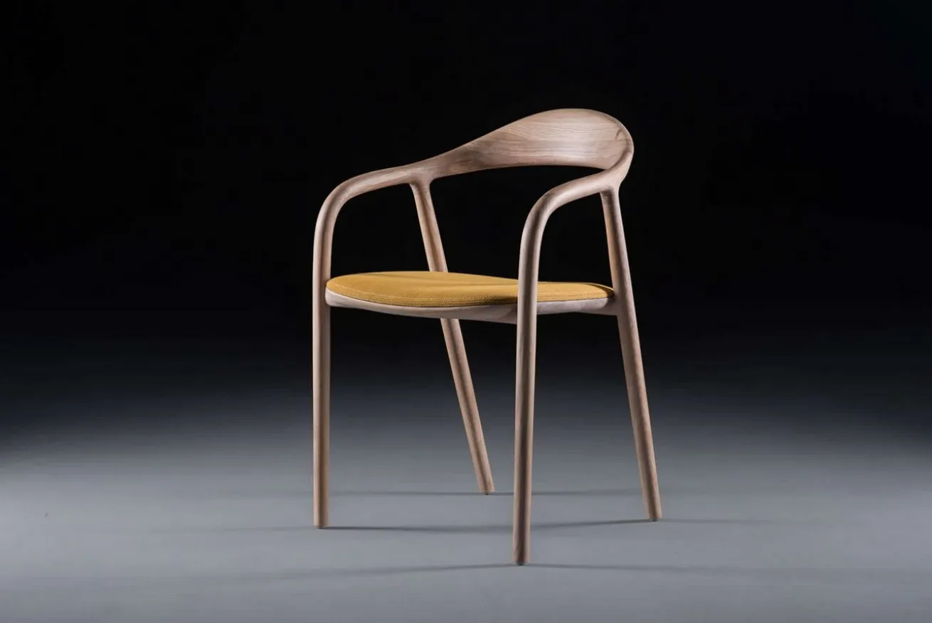 Ein komplexes Raster aus funktional abgestuften Elementen wird durch elegante Verbindungsstellen verbunden, die den Verlauf des Materials subtil vorgeben. Neva wirkt wie eine Skulptur im Raum, deren lineare Elemente unprätentiös Raumfragmente abgrenzen. Der Sitz als Grundelement ist eine Fläche, die durch strukturierte Linien, die in klaren, logischen Übergängen verlaufen, positioniert wird. Das dezent akzentuierte Rückenvolumen verjüngt sich an den Rändern und geht in eine durchgehende Linie über, die sich von der Armlehne bis zu den Beinen fortsetzt. Die Volumen und Texturen des Massivholzes vermitteln dank ihrer durchdachten Ausgewogenheit und feinen Handwerkskunst Weichheit und angenehme Verwendung. Das Stück fungiert im Raum als zurückhaltendes und dennoch kraftvolles visuelles Markenzeichen. Durch seine vertrauenswürdige Eleganz passt Neva perfekt in jeden Raum und wertet ihn auf. In privaten und intimen Innenräumen verleiht es optisch ansprechende Behaglichkeit, während sein unaufdringlicher, aber klar definierter Stil auch ein überzeugendes Geschäftsambiente schafft. Ein Produkt von solch universeller Schönheit wurde von Fachleuten und Endverbrauchern gleichermaßen geschätzt.