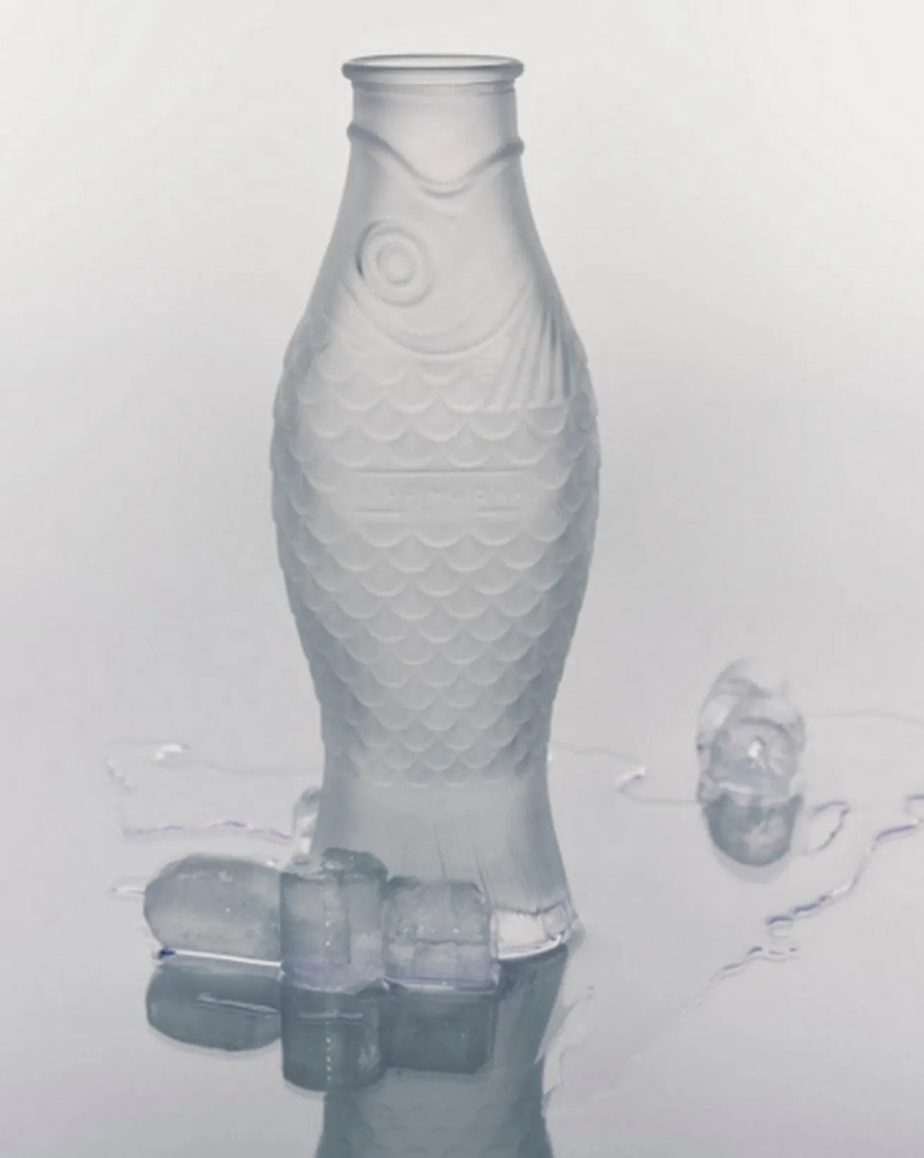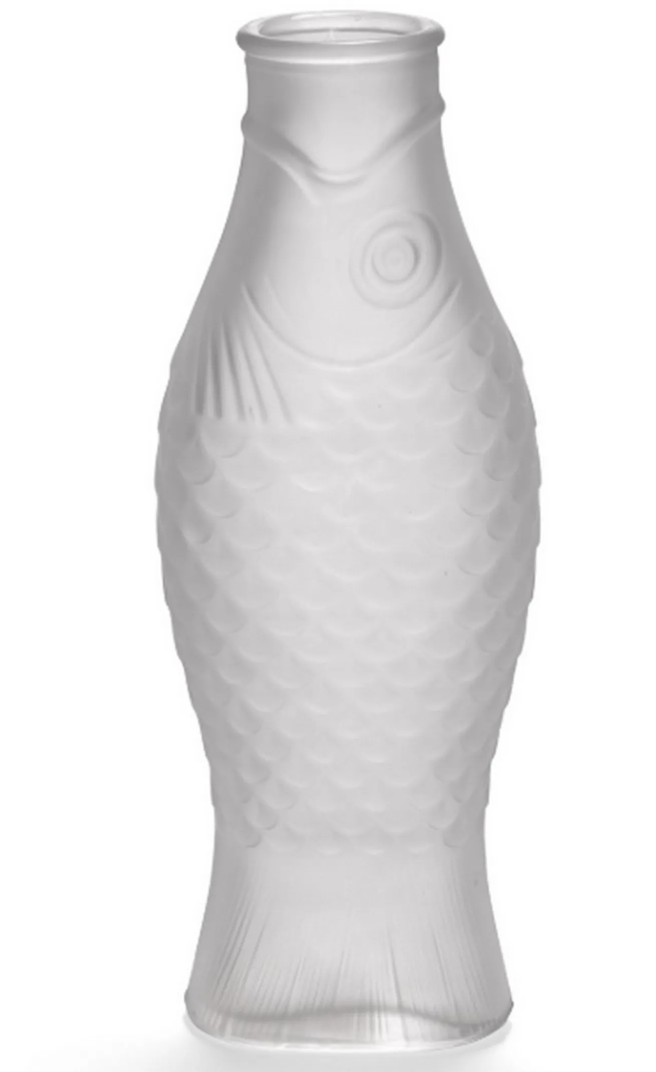 Es muss nicht immer eine schlichte Karaffe für Wasser, Saft oder Wein sein, auch wenn Dekanter äußerst edel aussehen. Mit unserem Modell, welches die Form eines Herings hat, sorgen Sie bei Ihren Gästen für Staunen und Nachfrage, woher Sie das praktische und dekorative Objekt denn her haben. Mit einer Breite von 10,6cm, einer Tiefe von 7,5cm sowie einer Höhe von 29cm lässt sich der blaue Glasfisch mit Schuppen mit so einigen Flüssigkeiten auffüllen.