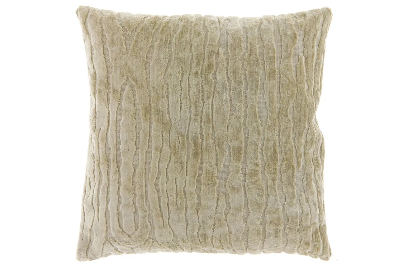 Ein großes Bett benötigt nicht nur passende Bettwäsche, sondern auch viele dekorative Kissen, die das Schlafgemach gemütlicher erscheinen lassen. Dovi, das naturfarbene quadratische Kissen mit leichter Musterung, passt daher hervorragend.