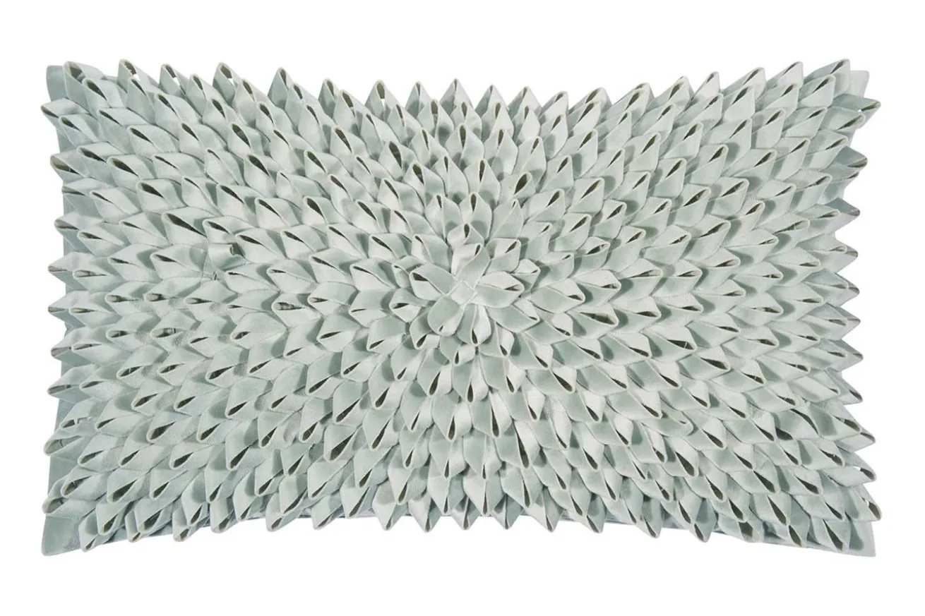 Die mintfarbene Kissenhülle fällt durch ihr 3D Muster direkt auf. Ihre herausragungen sehen aus wi eeingerollte Blätter einer Pflanze und der Farbton verstärkt diesen Naturgedanken nochmals. Ein Highlight auf jeder Sitzmöglichkeit. Ein rechteckiger Bezug mit einer Breite von 50cm und einer Tiefe von 30cm, der vor allem in modernen Einrichtungen für farbige Akzente sorgt.