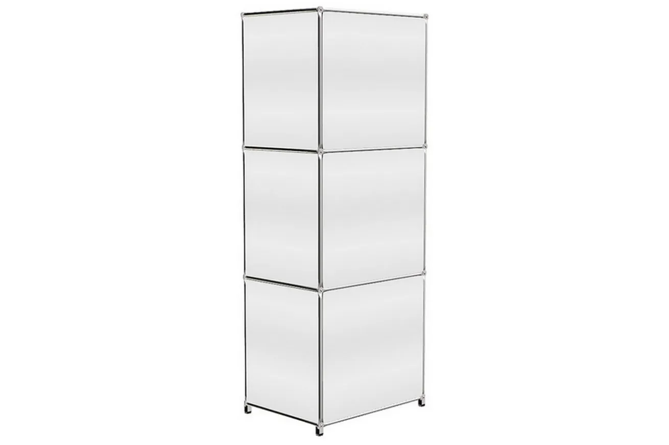 Auch in Büros braucht man einen Kleiderschrank. Es ist zwar weder ein Schwebetürenschrank oder ein Drehtürenschrank, aber praktisch ist er allemal. Mit einer Höhe von 223,5cm, einer Breite von 83cm und einer Tiefe von 63cm ist dieser dunkelblaue, aus MDF Platten zusammengesetzte Schrank mehr als wichtig.