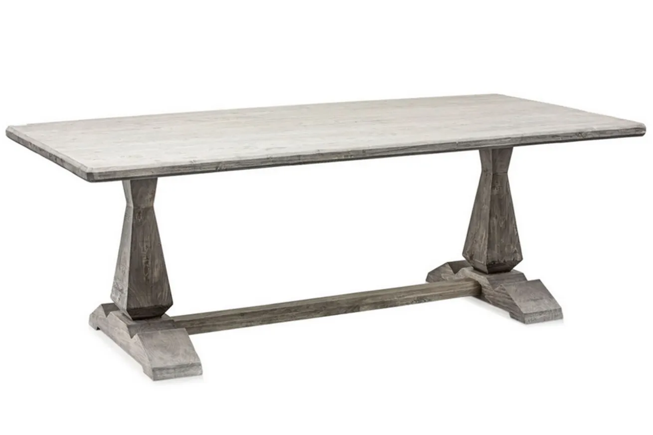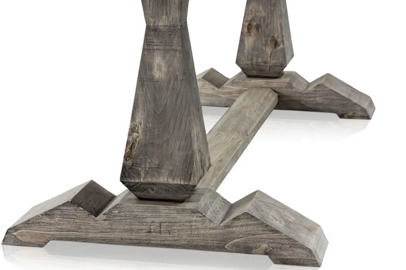 Dieses moderne Massivholzmöbel aus recyceltem Holz ist dank seiner Farbe ein Hingucker für Jung und Alt! Die rustikale Aufmachung, die dieses Produkt erweckt, hat die Maße Breite 220cm, Höhe 77cm und Tiefe 105cm. Zudem hat die Platte eine Dicke von 6cm. Da es sich um ein recyceltes holzprodukt handelt, ist es ein nachhaltiger Tisch mit einer grauen Patina. Wohin damit? Diese Speisetafel bereichert jedes Esszimmer im Landhausstil.