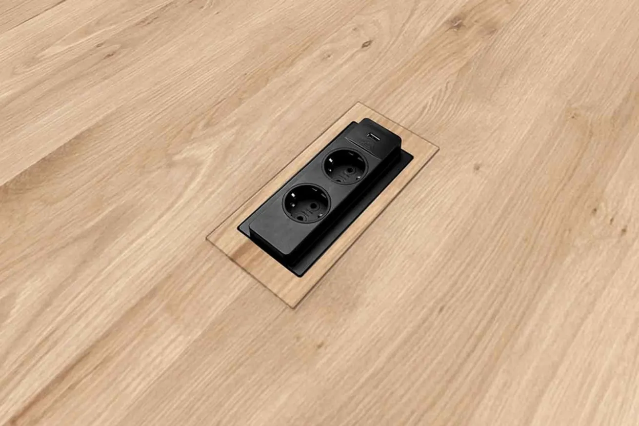 Schreibtisch mit integrierten Steckdosen