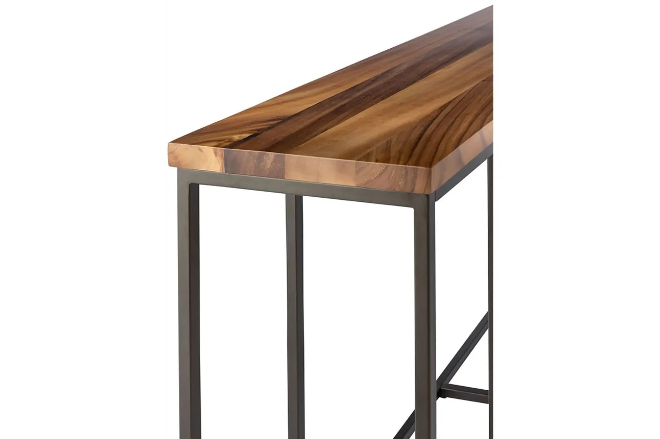 Die Konsolentischplatte aus naturfarbenem Suarholz strahlt eine einladende Aura aus und bringt die Wärme der Natur in jeden Raum. Jeder Tisch wurde sorgfältig ausgewählt, um die individuellen Maserungen und Farbtöne des Holzes zu unterstreichen, wodurch jeder Tisch zu einem einzigartigen Kunstwerk wird.