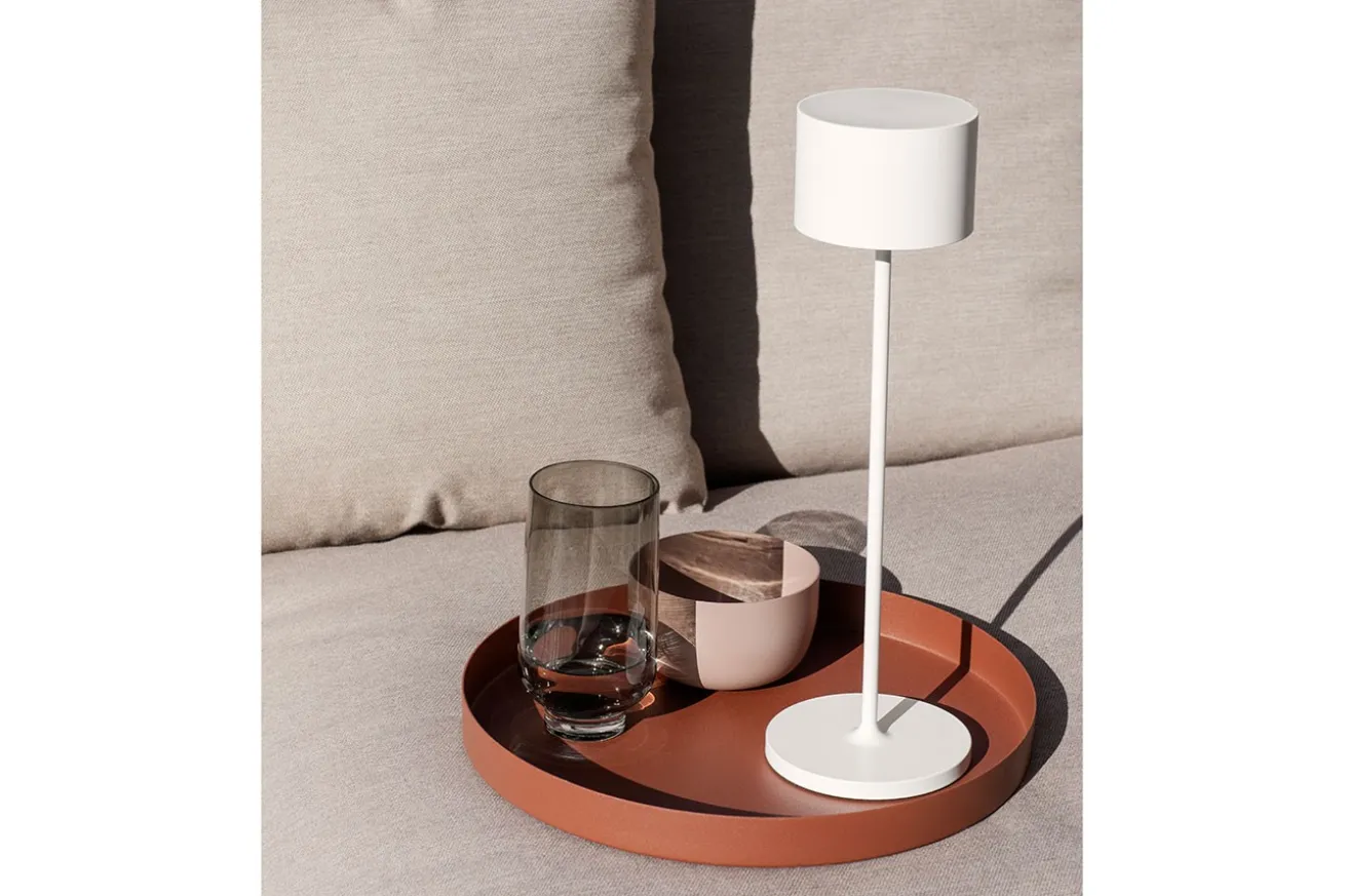Die 33,5cm hohe Lampe ist eine vielseitig einsetzbare Leuchte, die sowohl drinnen als auch draußen verwendet werden kann. Bestehend aus strapazierfähigem Aluminium, ihrer Kabellosigkeit und Wasserdichtigkeit hält Farol jedem Regen stand. Ein- und ausschalten lässt sie sich durch das Berühren des Mittelpunktes der Schirmmitte. Ohne Kabel und ohne Knopf, dennoch ist Farol in drei Helligkeitsstufen dimmbar. Die weiße Leuchte im Design Look passt nicht nur hervorragend in moderne Milieus, sondern auch in Outdoor-Bereiche im Nature- oder Skandistil. Im Schlafzimmer als Nachttischlampe oder im Büro als Schreibtischleuchte macht sie genauso eine gute Figur wie im Garten auf einem Beisteller. Nach einer Brenndauer von 8-40 Stunden kann Farol mit dem beigefügten USB-C-Kabel wieder aufgeladen werden.