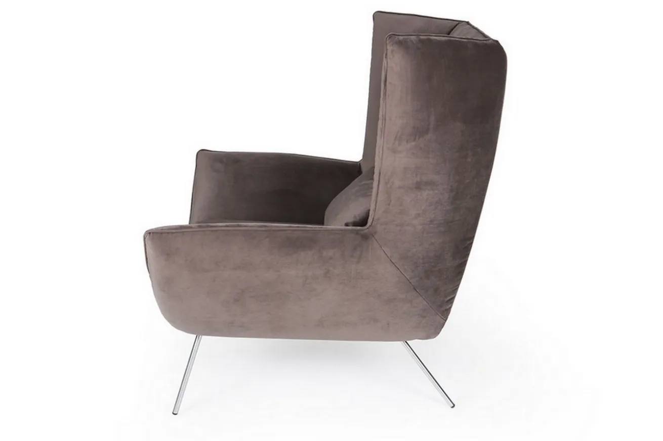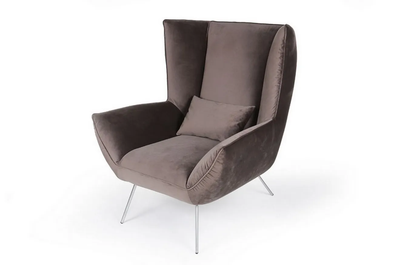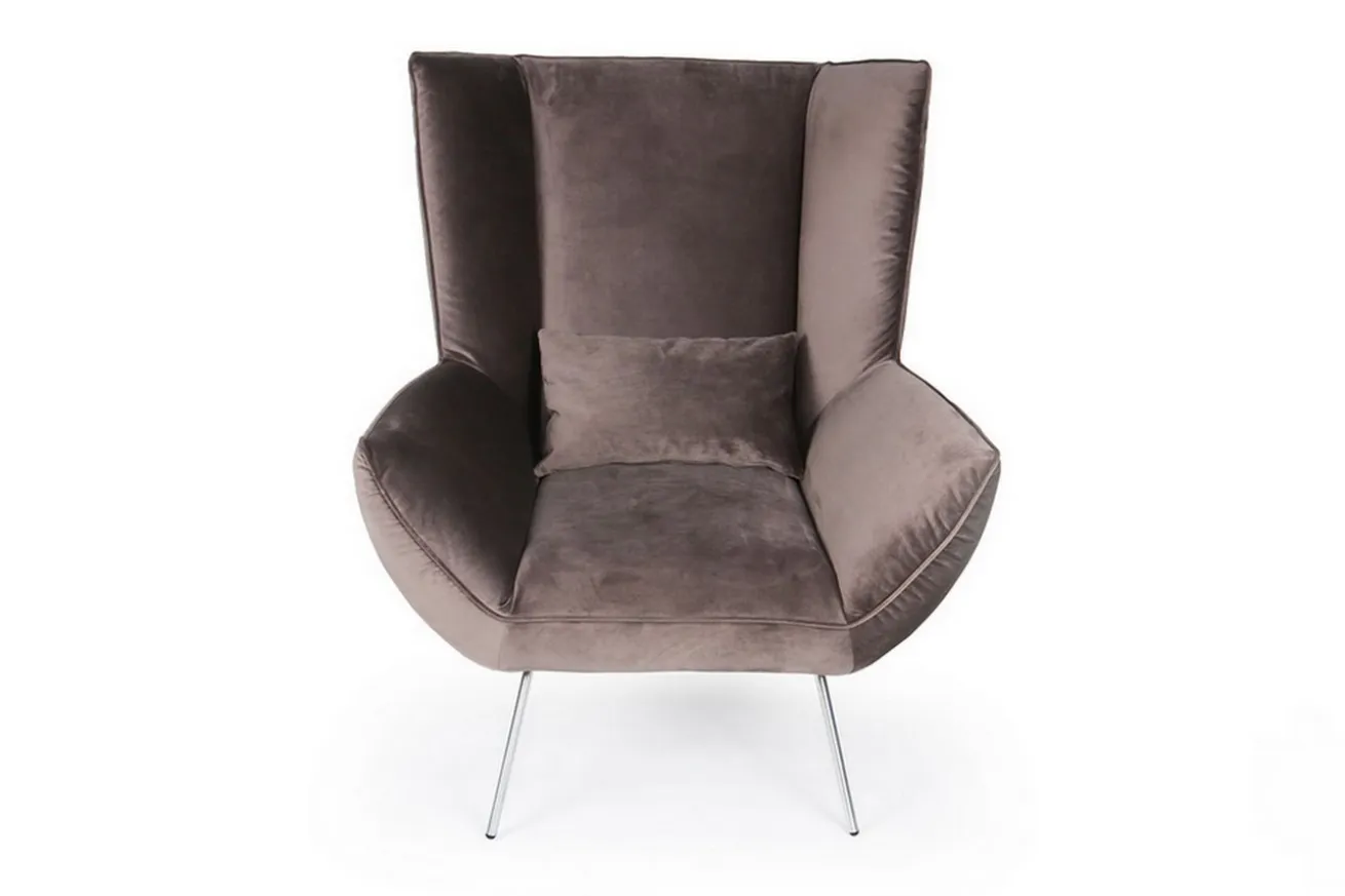 Polstersessel mit hoher Rückenlehne und samtigem Bezug. Für die kuscheligen Abende allein oder zu zweit. Der Designer Sessel ist die moderne Interpretation des klassischen Ohrensessels. Dieser Sessel ist abgebildet mit Metallbeinen schwarz matt. (Standardausführung) Gegen Aufpreis können Sie den Sessel auch mit Metallbeinen chrom glänzend oder Edelstahl gebürstet bestellen.