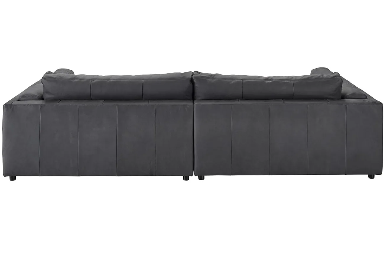 Das anthrazitfarbene Leder verleiht dem Sofa nicht nur eine markante Ausstrahlung, sondern punktet auch mit einer geschmeidigen Haptik. Die klaren Linien und die großzügige Sitzfläche schaffen eine moderne Ästhetik, die sich in jedem Raum als Blickfang präsentiert.