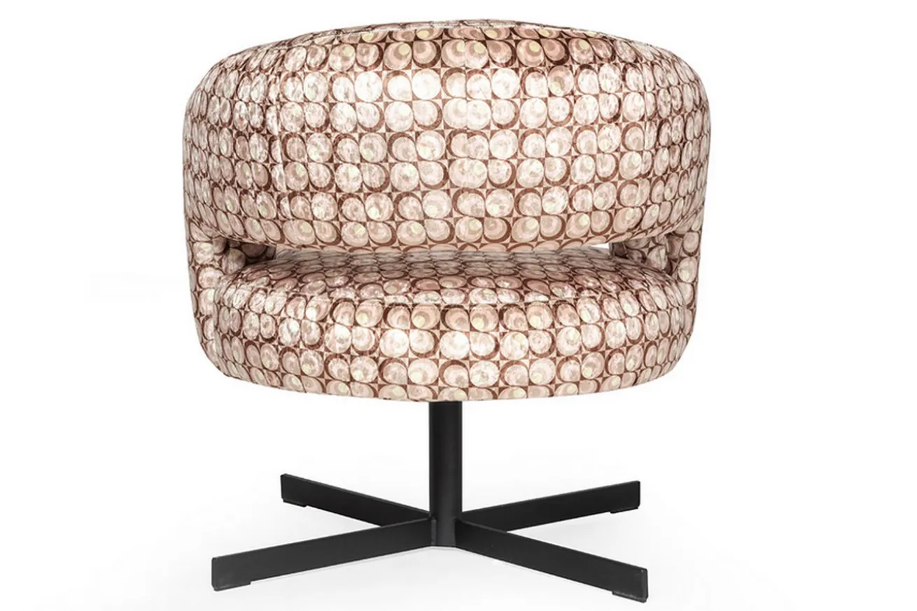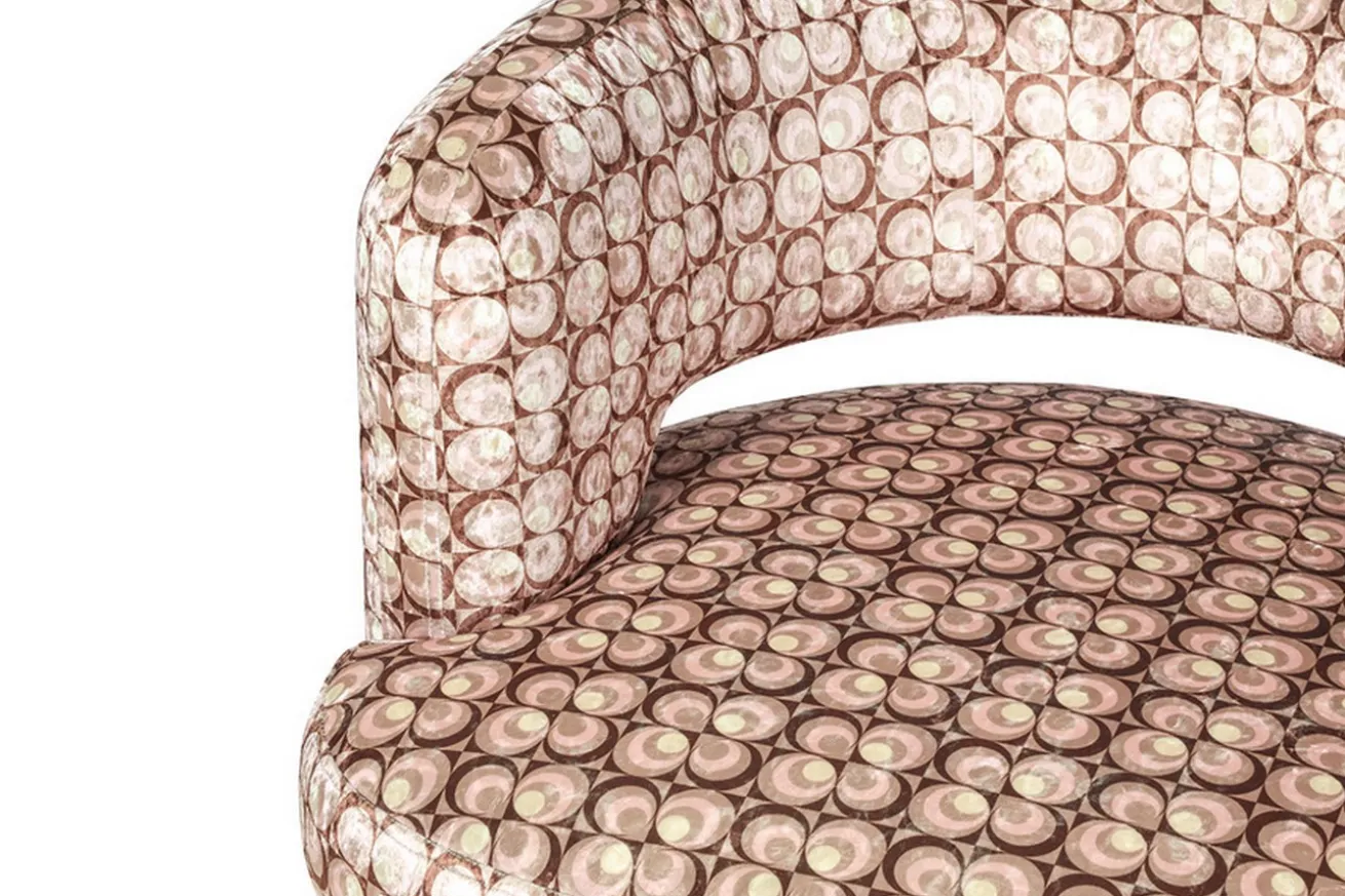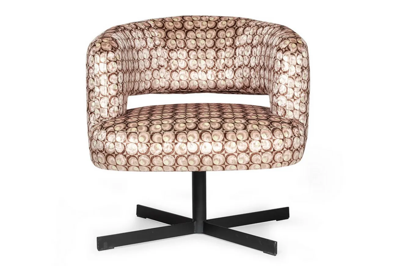 Erleben Sie den neuesten Wohntrend: Low Dining – entspanntes Speisen auf niedriger Sitzhöhe. Dieser stilvolle, drehbare Loungesessel verbindet Komfort mit Retro-Charme. Sein edler Samtbezug im trendigen Retromuster in Rosa-, Braun- und Mocchatönen setzt stilvolle Akzente. Perfekt für moderne Low-Dining-Arrangements, aber auch als eleganter Solist in Ihrer Lounge oder Leseecke ein echtes Highlight.
