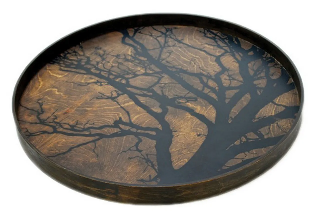 Notre Monde Rundtablett „Black Tree“ – handbemaltes Holztablett