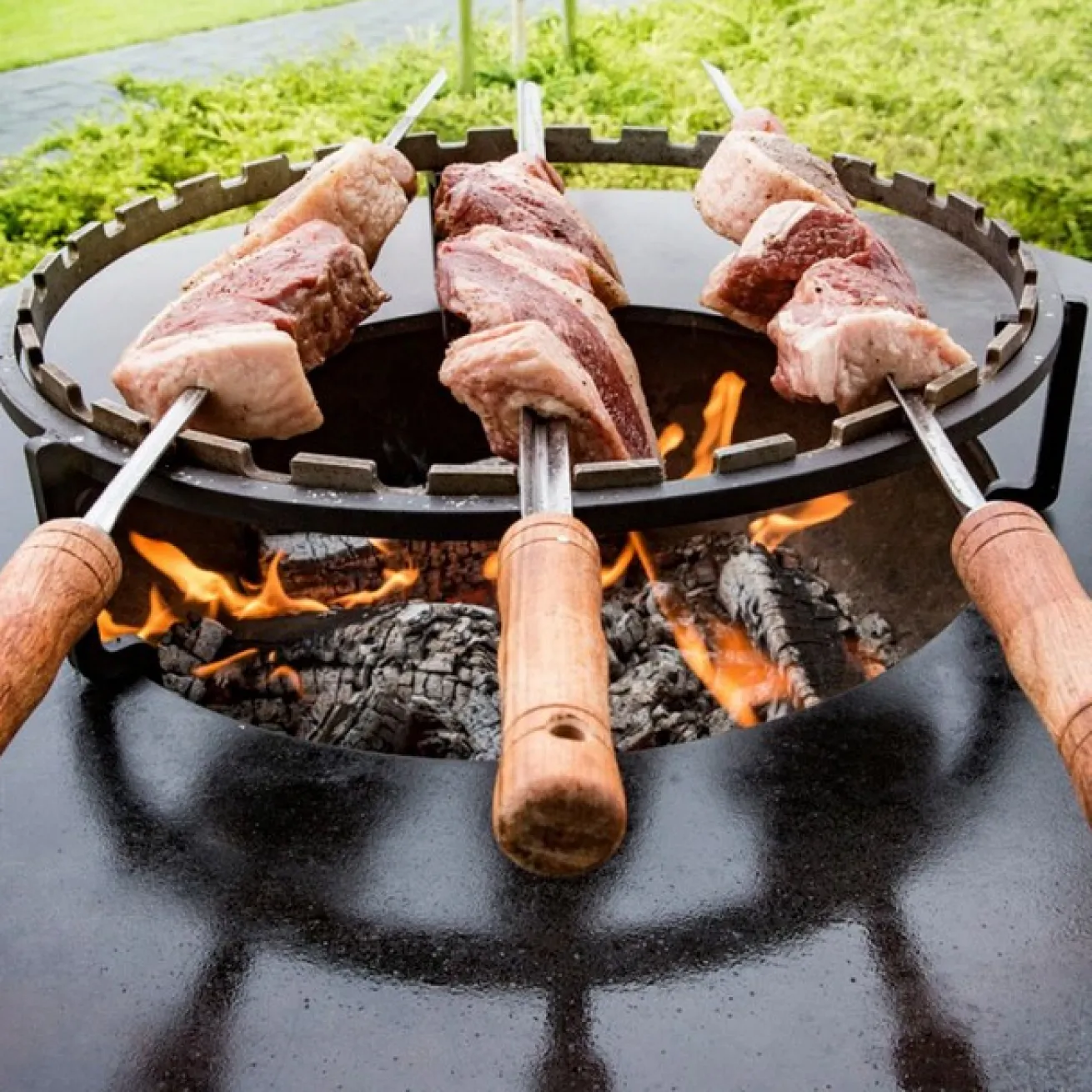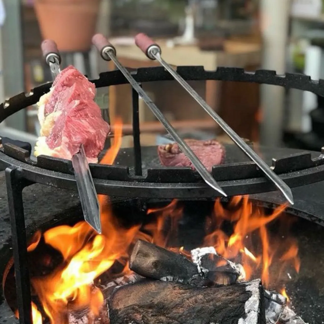 Grillfans werden dieses Set aus drei Stahlspießen, mit einem speziell entworfenen Gestell, lieben. Das Gestell wird direkt über der Flamme der OFYR-Kocheinheit platziert und hat die perfekte Höhe, damit Fleisch und Gemüse auf den Punkt gegart werden kann. Die Spieße bestehen aus Stahl und haben eine Höhe von 21cm.