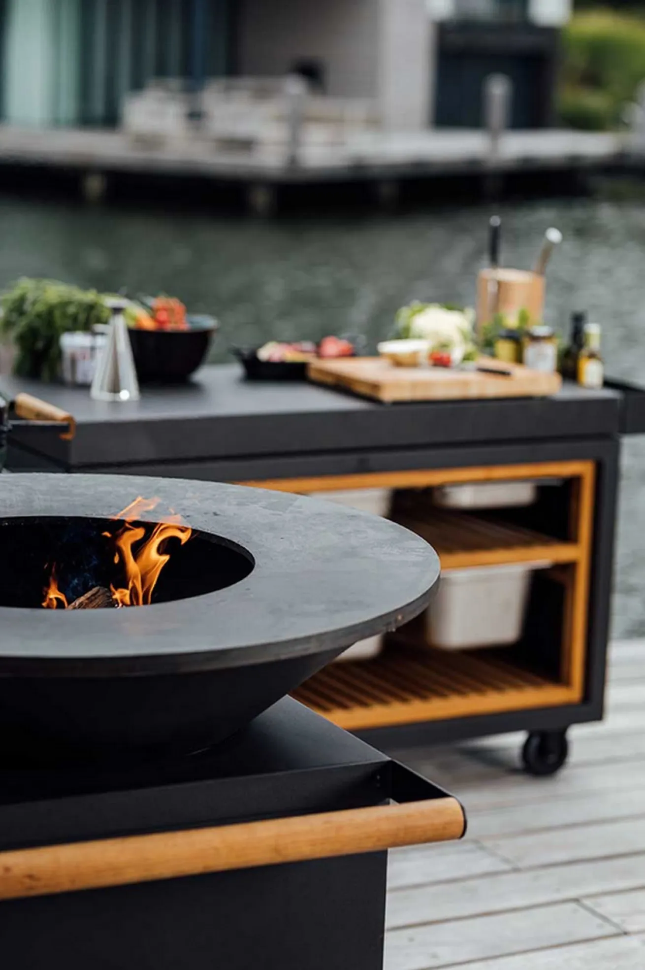 Der OFYR Classic Black Corten PRO verfügt über alle Eigenschaften des OFYR Classic Storage und bietet als zusätzlichen Vorteil einen Griff und Räder. Sie können Ihre Kocheinheit ganz bequem versetzen. Der Griff besteht aus Teakholz. Deshalb empfiehlt es sich, den OFYR Classic Storage Corten PRO im Haus oder unter einem Dach aufzubewahren. Er ist in einer Größe von 100 cm erhältlich. Ein Grillgerät, das sich problemlos von A nach B schieben lässt und mit den passenden Details alles griffbereit hält, findet man nicht überall.