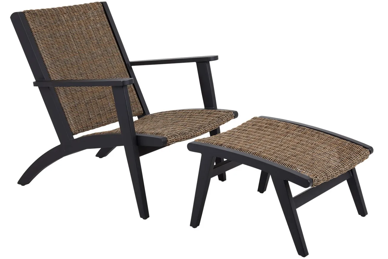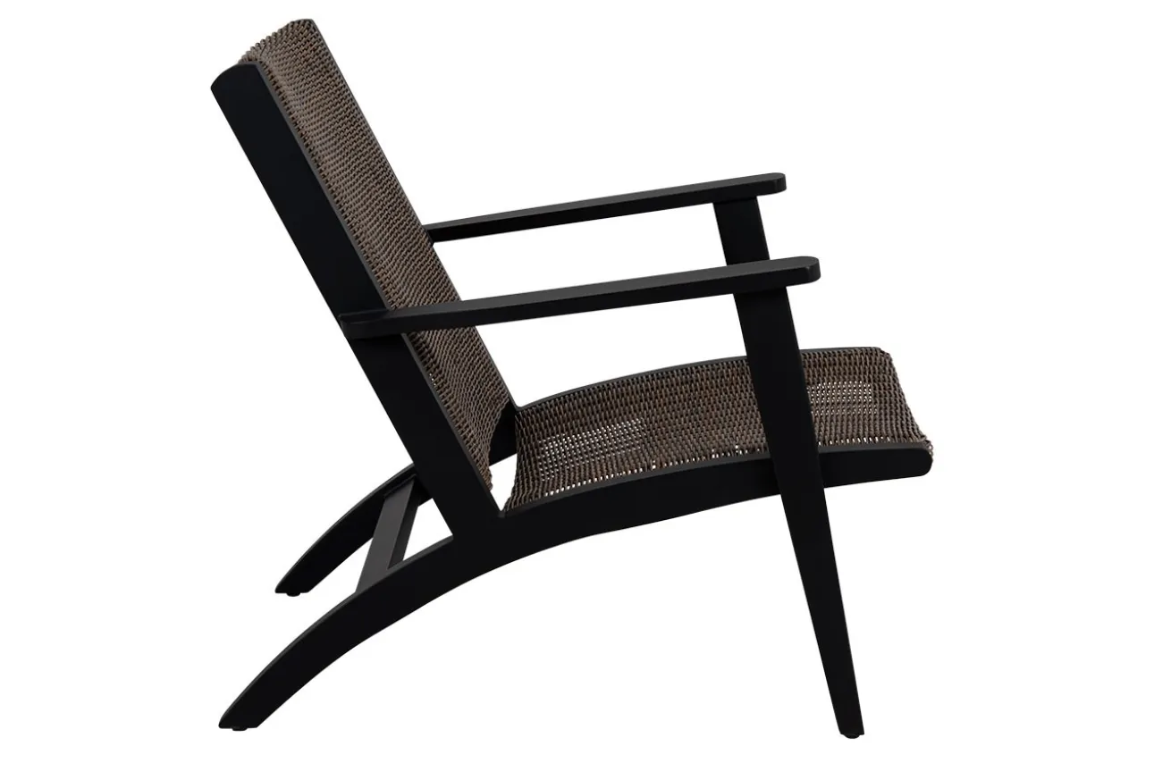 Bei diesem Loungesessel für Garten und Balkon müssen Sie sich nicht sorgen, dass das Rattan irgendwann schlecht wird, denn das Material, das in Lehne und Sitz verwendet wurde, ist Polyrattan, einem Rattan ähnlichen Material, das sich durch seine Flexibilität auszeichnet, was bei richtigem Rattan nicht der Fall ist. Der naturfarbene Stoff ist witterungsbeständig und pflegeleicht und hat feuchtigkeitsabweisende Eigenschaften, perfekt also für lange Sommerabende draußen mit Freunden. Das Gestell, das das Polyrattan umrahmt, ist aus schwarz pulverbeschichtetem Aluminium. Zusammen ergibt das einen Loungesessel, der nicht nur in moderne Gärten passt, sondern auch eine grandiose Figur auf Terrassen im Skandistil und auf Balkonen im Ibiza-Style macht.