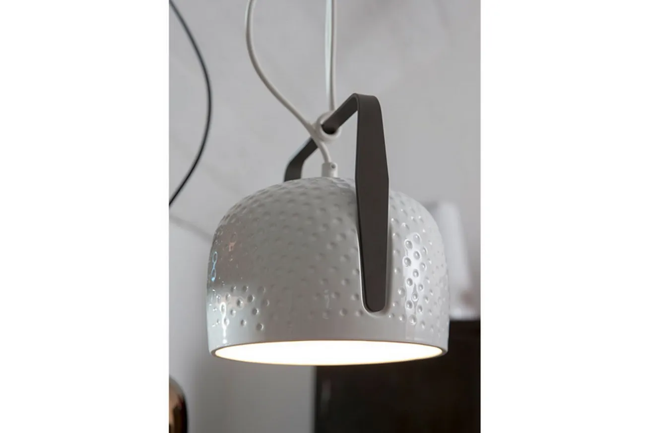 ein Meisterwerk des renommierten italienischen Labels Karman, entstammt der gleichnamigen Leuchtenserie, die vom kreativen Designstudio Baldessari & Baldessari exklusiv für diesen Leuchtenhersteller entwickelt wurde. Diese einzigartige Leuchte besticht durch ihr ansprechendes und modernes Design. Ihr markantes Merkmal ist der halbkugelartige Lampenschirm, der aus hochwertiger Keramik gefertigt ist und sowohl außen als auch innen mit einer glänzendenweißen Glasur veredelt wurde.