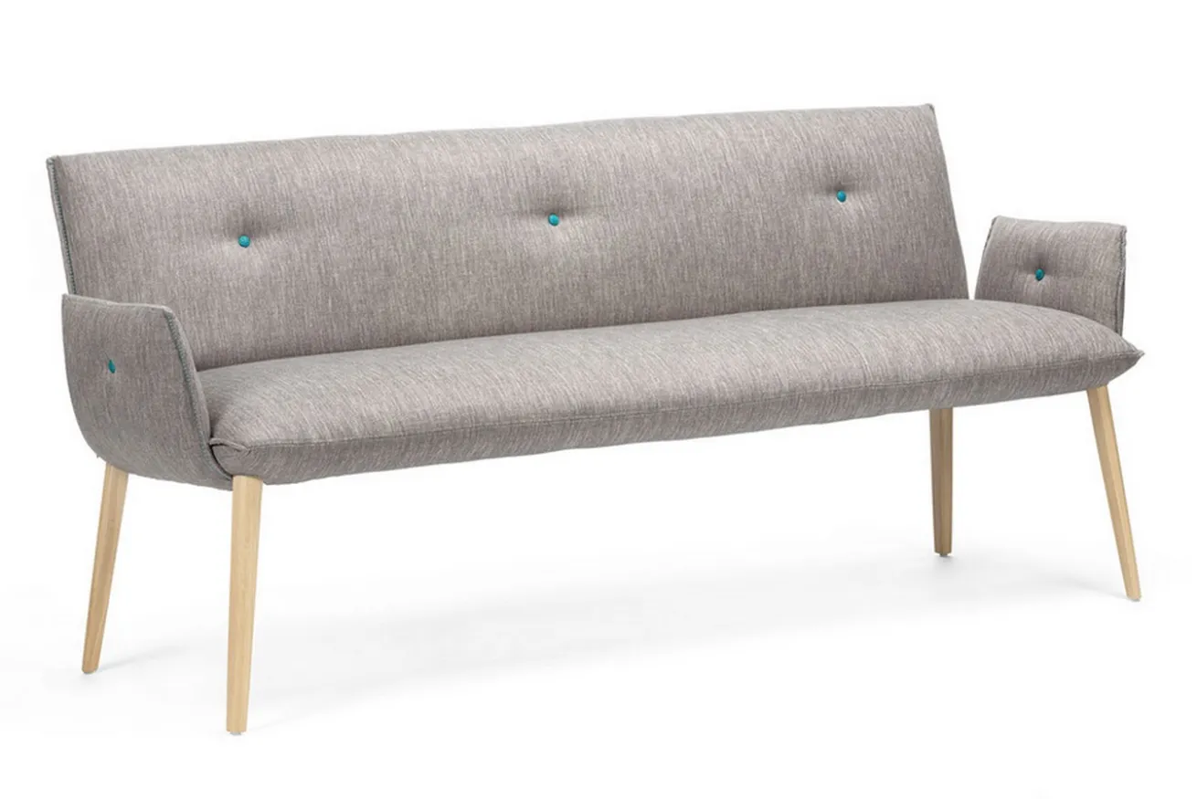 Soft steht für weich und bequem und verbindet sich mit einem frechen und frischen Touch – eben Soda! Das 192cm breite, 83cm hohe und 43-61cm tiefe Produkt ist eine Bank für nahezu jeden Wohnraum, egal ob Küche, Wohnzimmer oder ein anderer Raum. Der graue Stoffbezug unterstreicht die gemütliche Polsterung. Ein Möbelstück, auf dem es sich stundenlang aushalten kann.