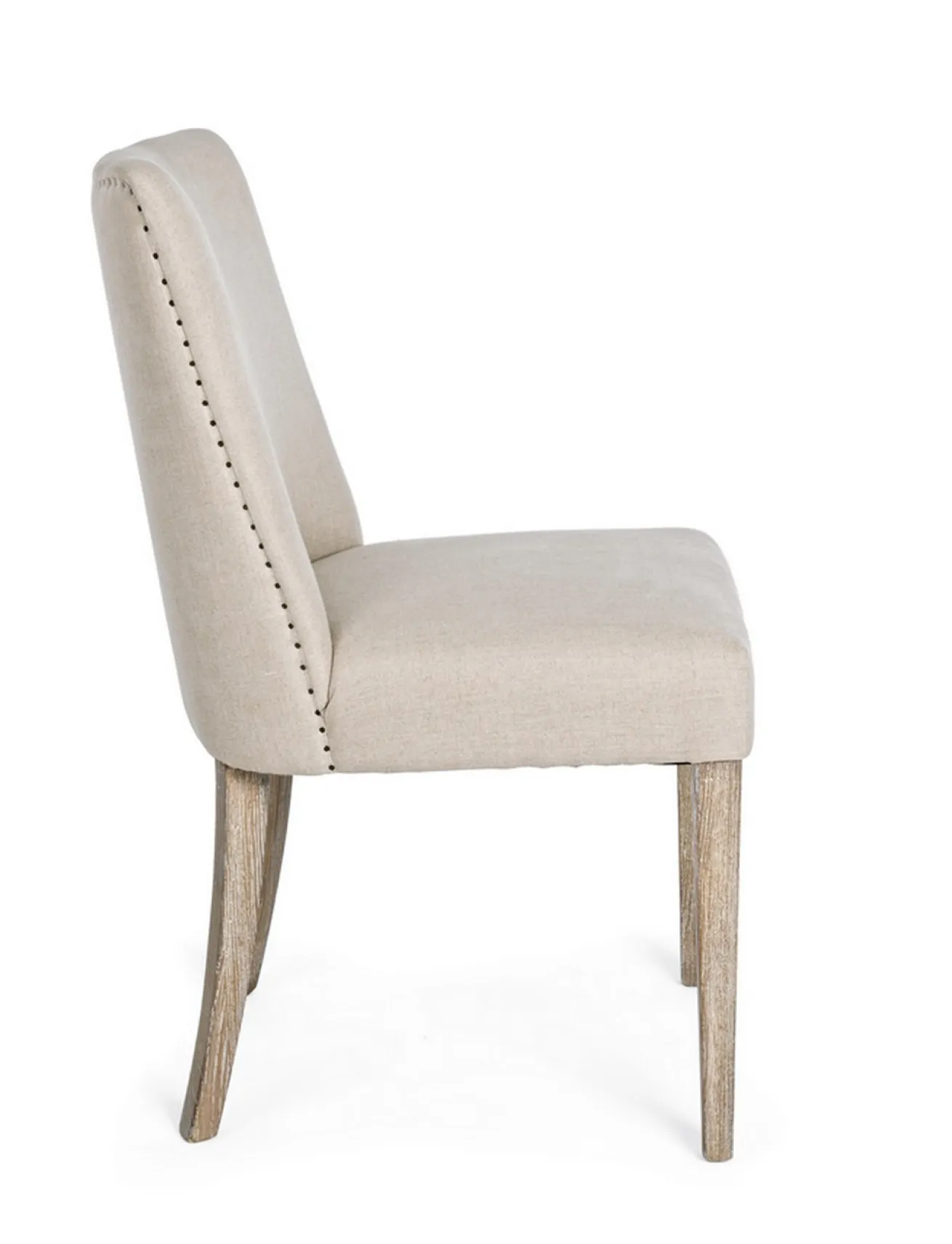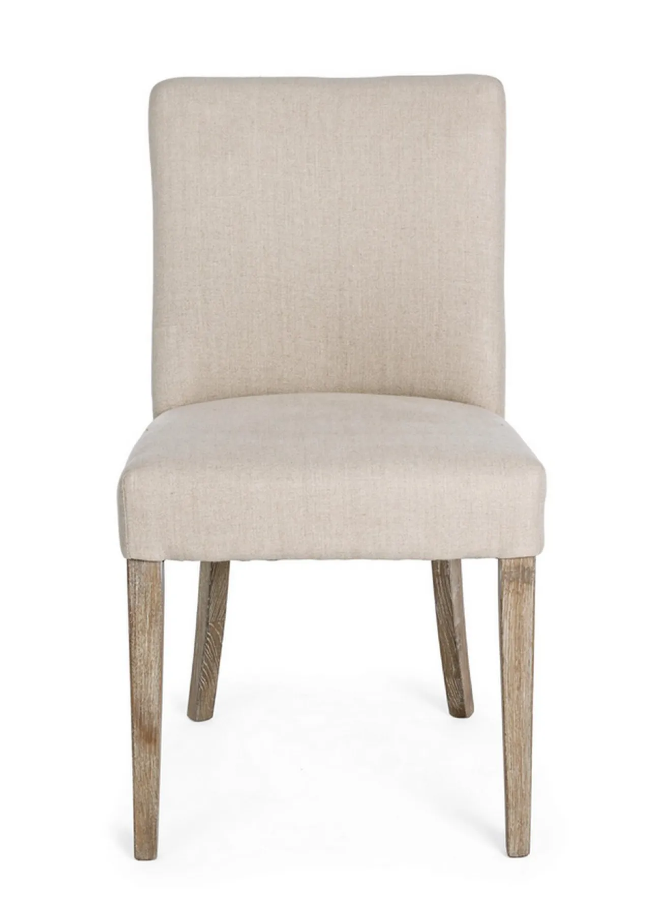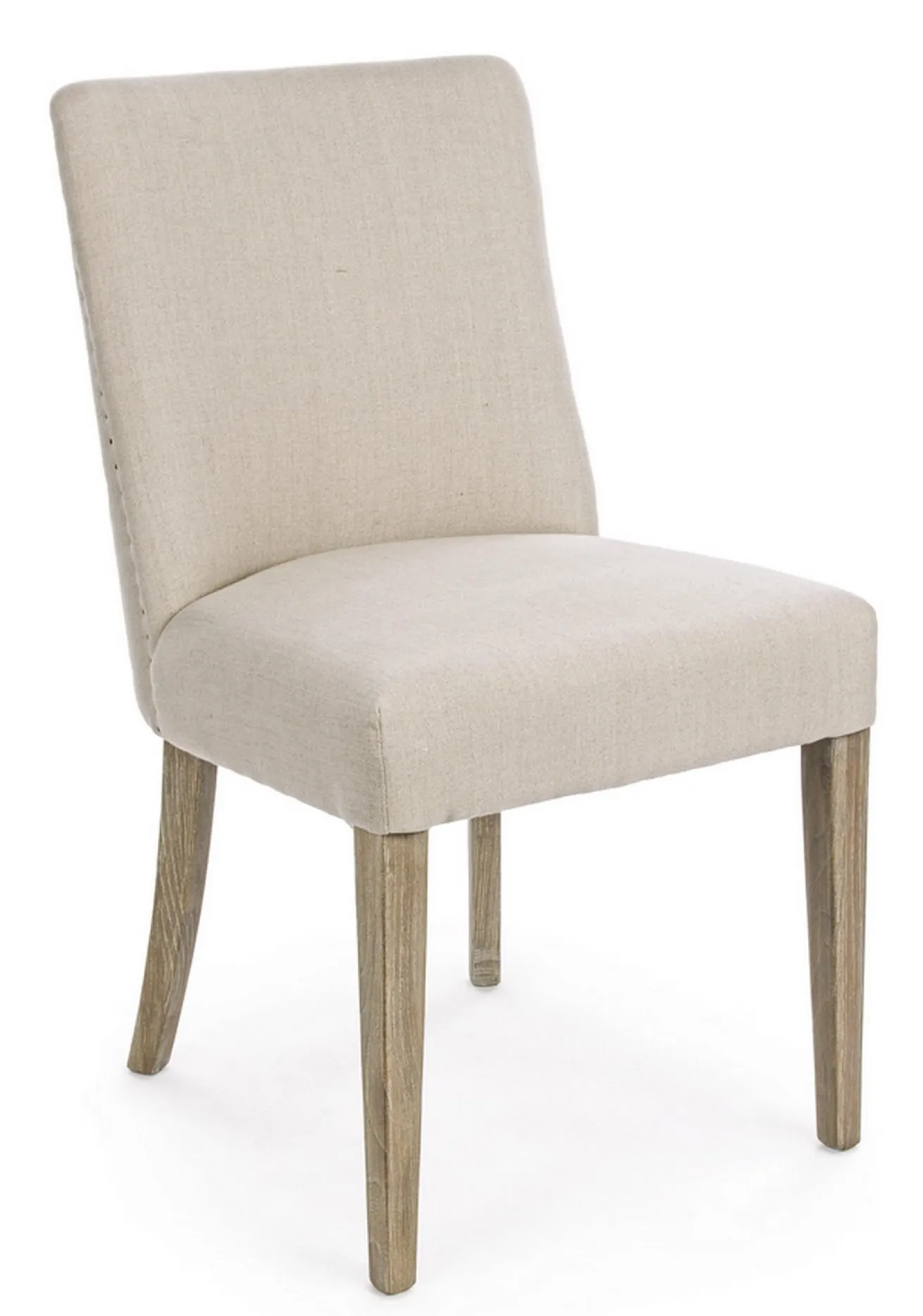 Hauchen Sie Ihrem modernen Wohnzimmer ein wenig Klassik ein! Wie das geht? Vielleicht mit diesem weich gepolsterten Küchenstuhl Beatrice, der dank seiner Farbwahl auch in Räumlichkeiten im Skandistil hineinpasst. Der Korpus ist mit naturfarbenem Leinen bezogen, einem flusenfreien Stoff, der schmutzabweisend ist und somit hervorragend auf Stühle passt, auf denen gegessen wird. Kombiniert wird die Farbe mit dem naturfarbenen Korpus aus Eichenholz. Diese Holzart zeichnet sich durch seine natürlich-warme Farbgebung aus, und findet sich oft in skandinavisch eingerichteten Häusern wieder. Warum dann nicht beides miteinander kombinieren und ein Esszimmer der etwas anderen Art gestalten?