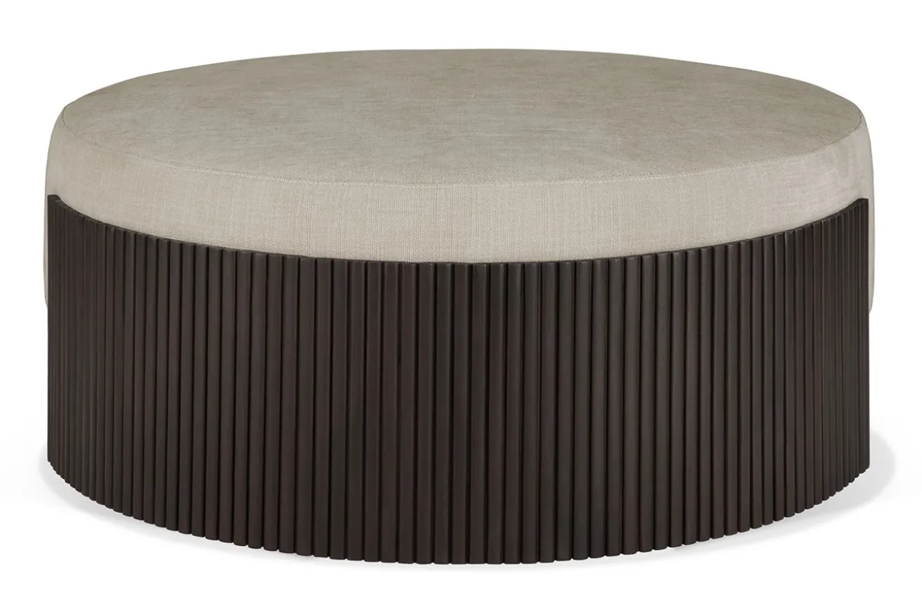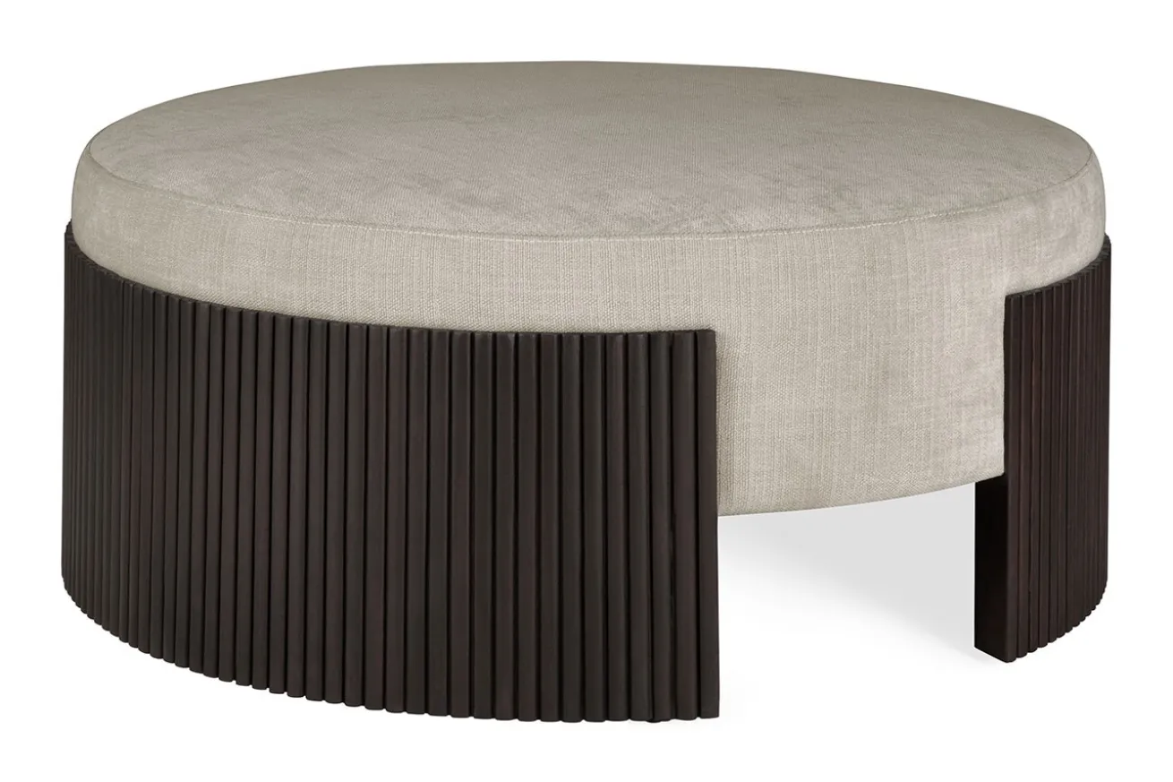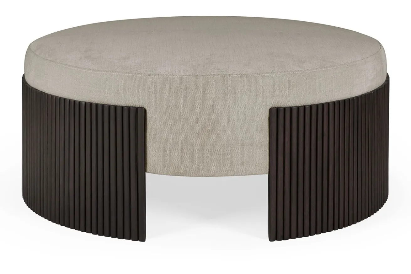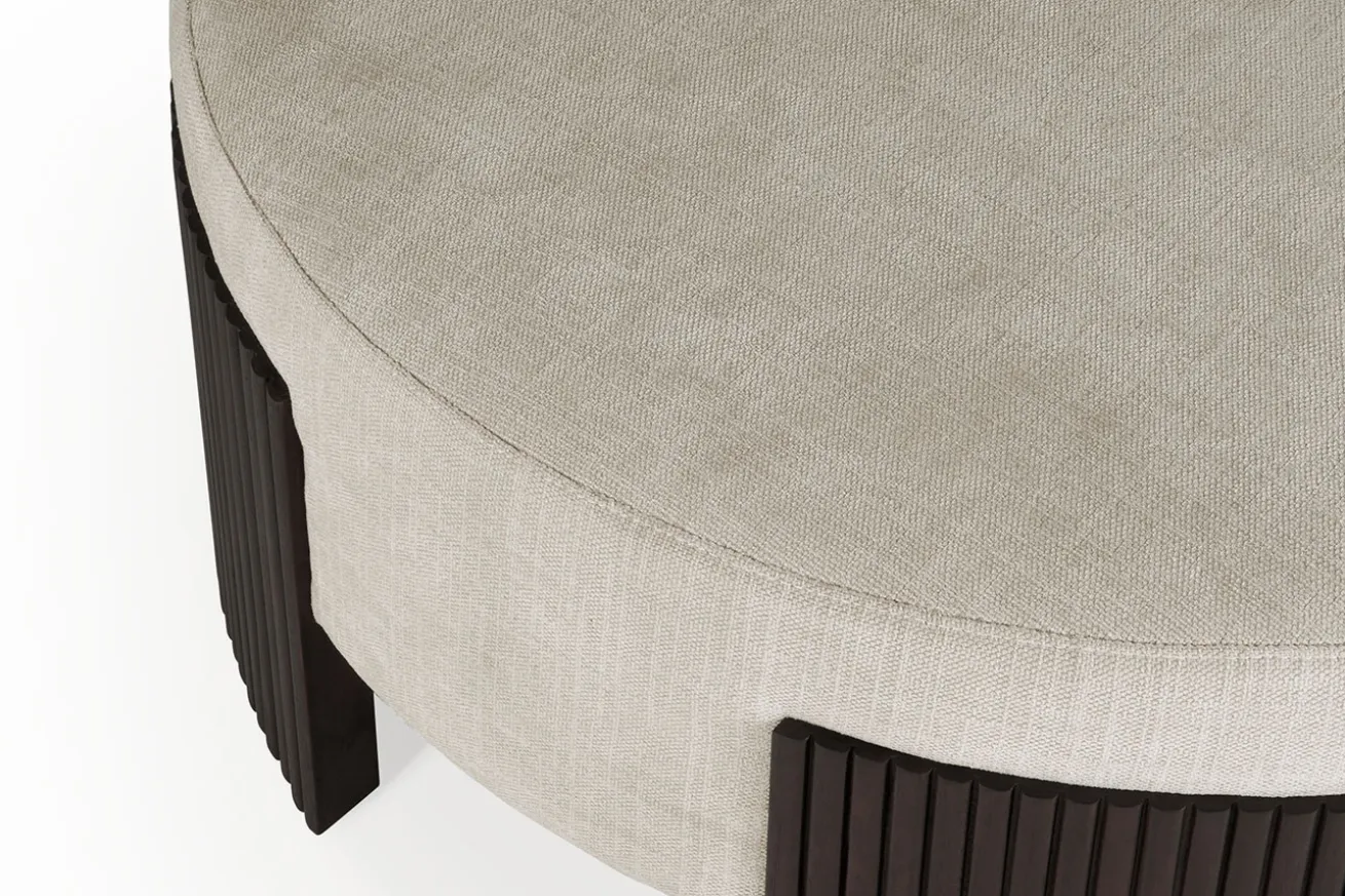 Pouf Roller Max Mahagoni braun D 85cm Die Kollektion Roller Max beeindruckt durch ihr Design, das sich durch seinen gestapelten Holzstab-Effekt auszeichnet. Der Sitzhocker ist ein multifunktionales Objekt, welches das bequeme Polsterkissen mit dunkelbraun lackiertem Mahagoni umschließt.