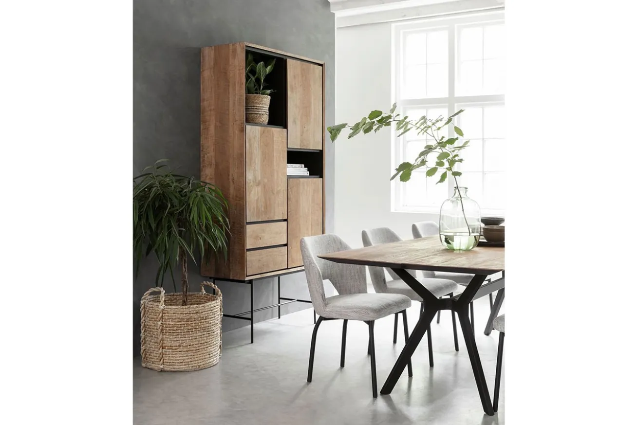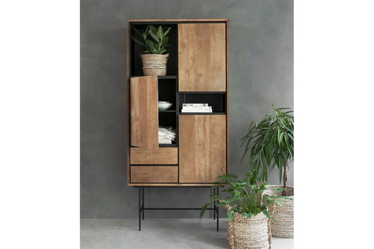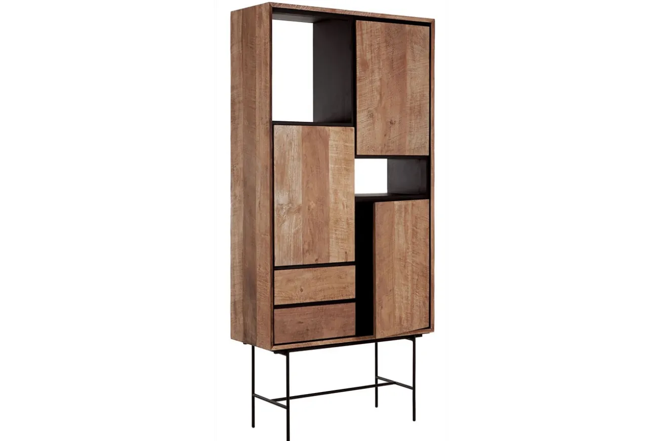 Egal in welchem Raum, Stauraum ist immer von Nöten, sei es Flur, Büro oder Wohnzimmer. Wie gut, dass Metropole Abhilfe schafft! Das Wandregal auf schwarzen Metallfüßen zeichnet sich durch das naturfarbene Teakholz, aus dem es besteht, aus. Es sieht nicht nur mordern aus, sondern wurde auch kunstvoll gestaltet, denn Symmetrie hat hier keinen Platz: Türen und Schubladen sind eingebaut, aber so, dass eine freie Ablagefläche ensteht. So lassen sich problemlos Dekoobjekte wie Vasen oder eingerahmte Bilder, aber auch Ihre Lieblingsbücher kunstvoll platzieren.