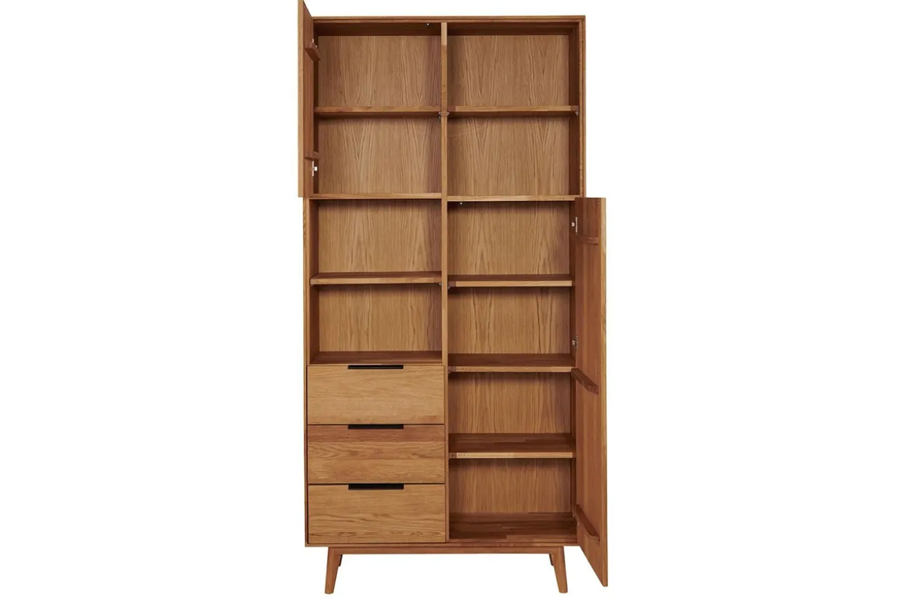 Aufbewahrungsschrank, 100% wildes Eichenhholz, lackierte Oberfläche, verschiedene Farben, 2 Holztüren, Glas- und Holzböden,