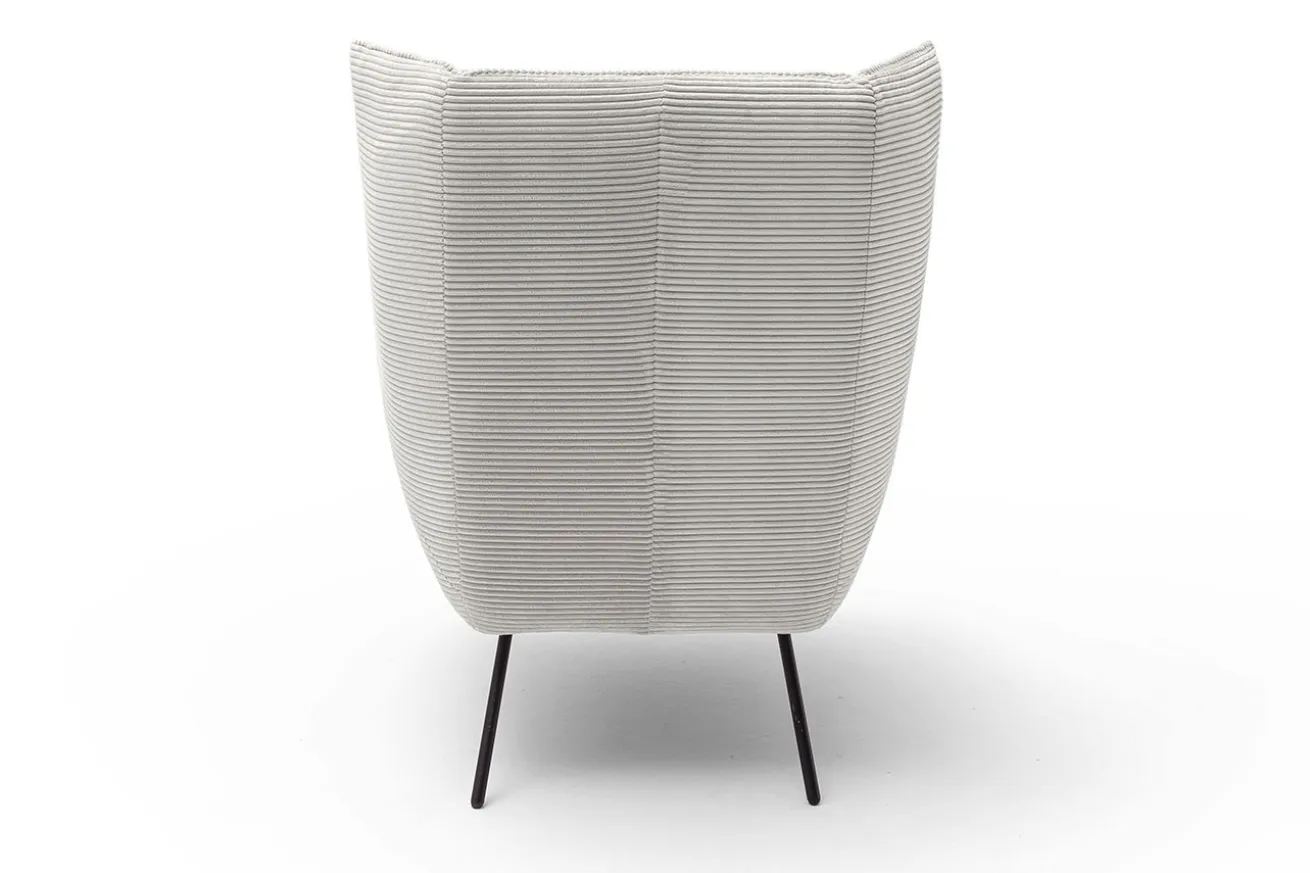 Die schwarzen Metallfüße fügen sich nicht nur nahtlos in das moderne Design ein, sondern sorgen auch für Stabilität und Langlebigkeit. Die klare Linienführung und das harmonische Zusammenspiel von Cord und Metall verleihen dem Sessel eine zeitgemäße Eleganz.