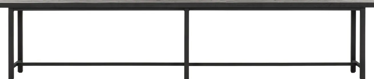 Die markante U-förmige Metallbasis in schwarzem Finish verleiht der Bank Stabilität und modernen Charme. Die klaren Linien und das zeitgemäße Design der Basis harmonieren perfekt mit dem rustikalen Teakholz, was zu einem beeindruckenden Gesamtbild führt.