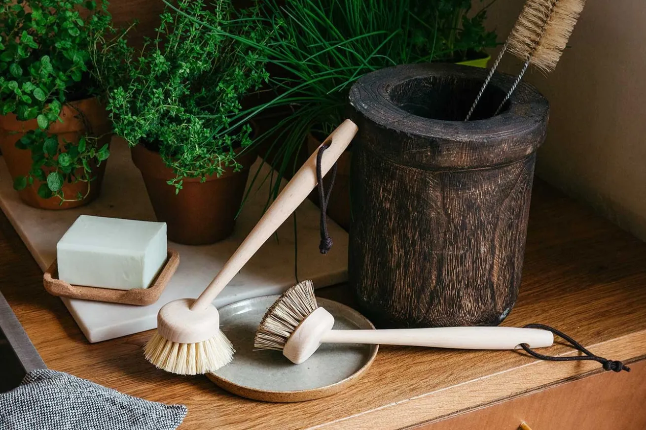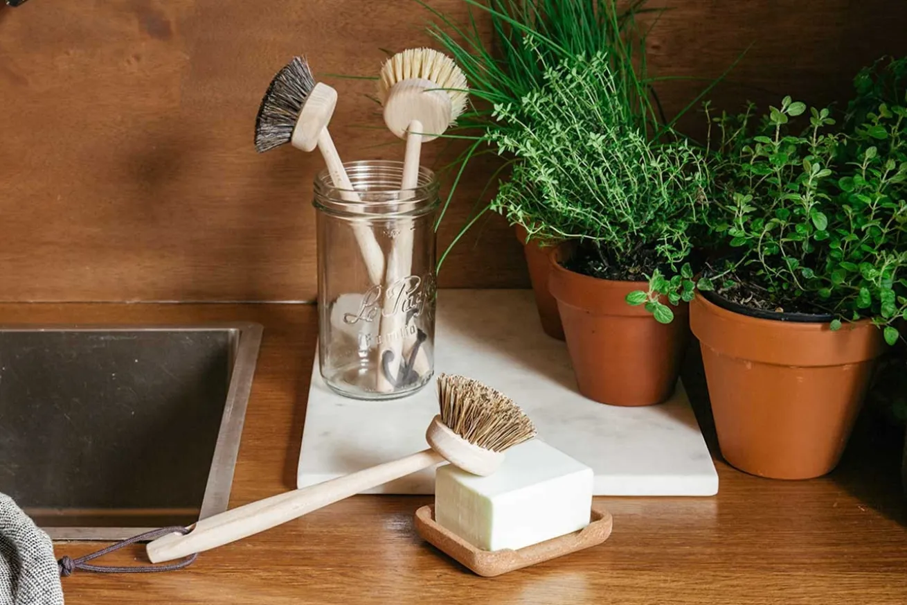 Spülbürsten aus Buchenholz gefertigt mit mittelfesten Naturfasern aus der Agave. 100% made in France von der traditionellen französischen Bürstenmanufaktur aus Nantes Andrée Jardin.