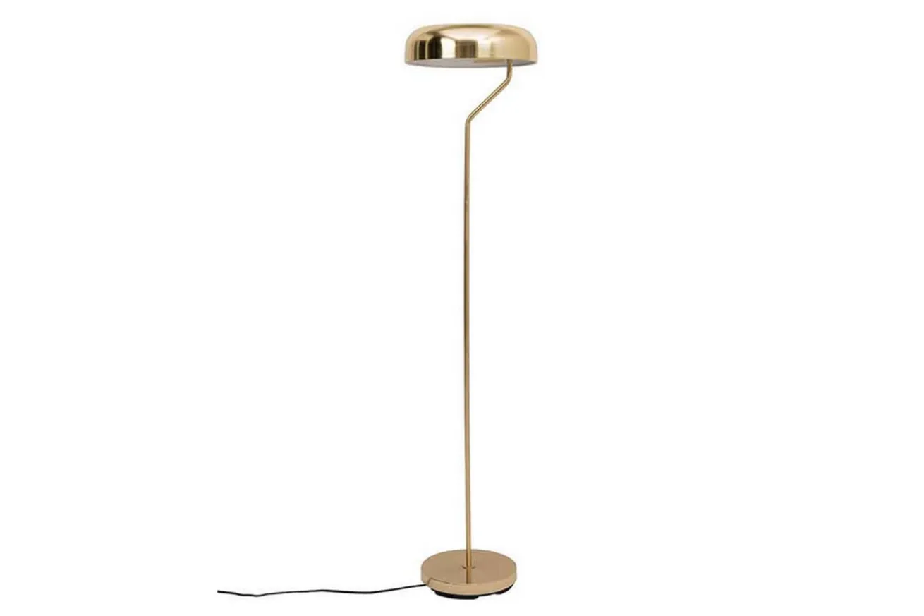Diese schicke Stehlampe ist aus Metall. Sie hat einen Durchmesser von 30cm sowie eine Höhe von 130cm. Die Farbe ist Messing und glänzend. Elegant und schlicht zugleich, vor allem in modernen Milieus aufzufinden. Dank der Höhe eignet sie sich nicht nur neben dem dunkelgrünen Sofa, sondern auch neben das Bett im Schlafzimmer, wenn kein Platz mehr für einen Nachttisch vorhanden ist.