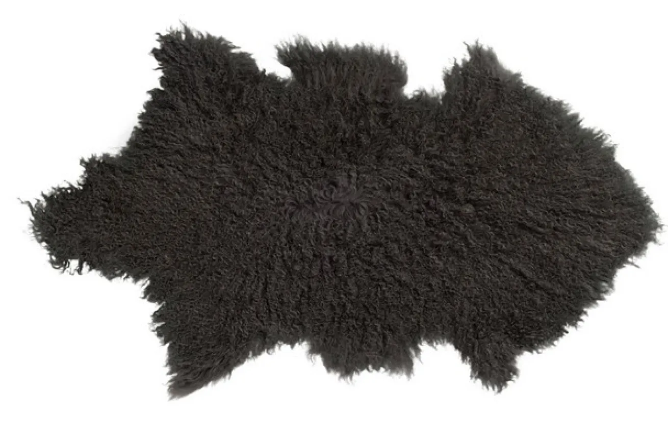 Kuscheliger als ein herkömmlicher Teppich ist immer ein Fell. Dieses hier entspringt eines tibetanischen Schafes und wurde grau gefärbt. Mit seiner Naturfaser sorgt es für Kuscheligkeit und ist dank der dunkelgrauen Farbe auf jeden Fall ein Blickfang. Das Fell ist atmungsaktiv und somit feuchtigskeitsregulierend.