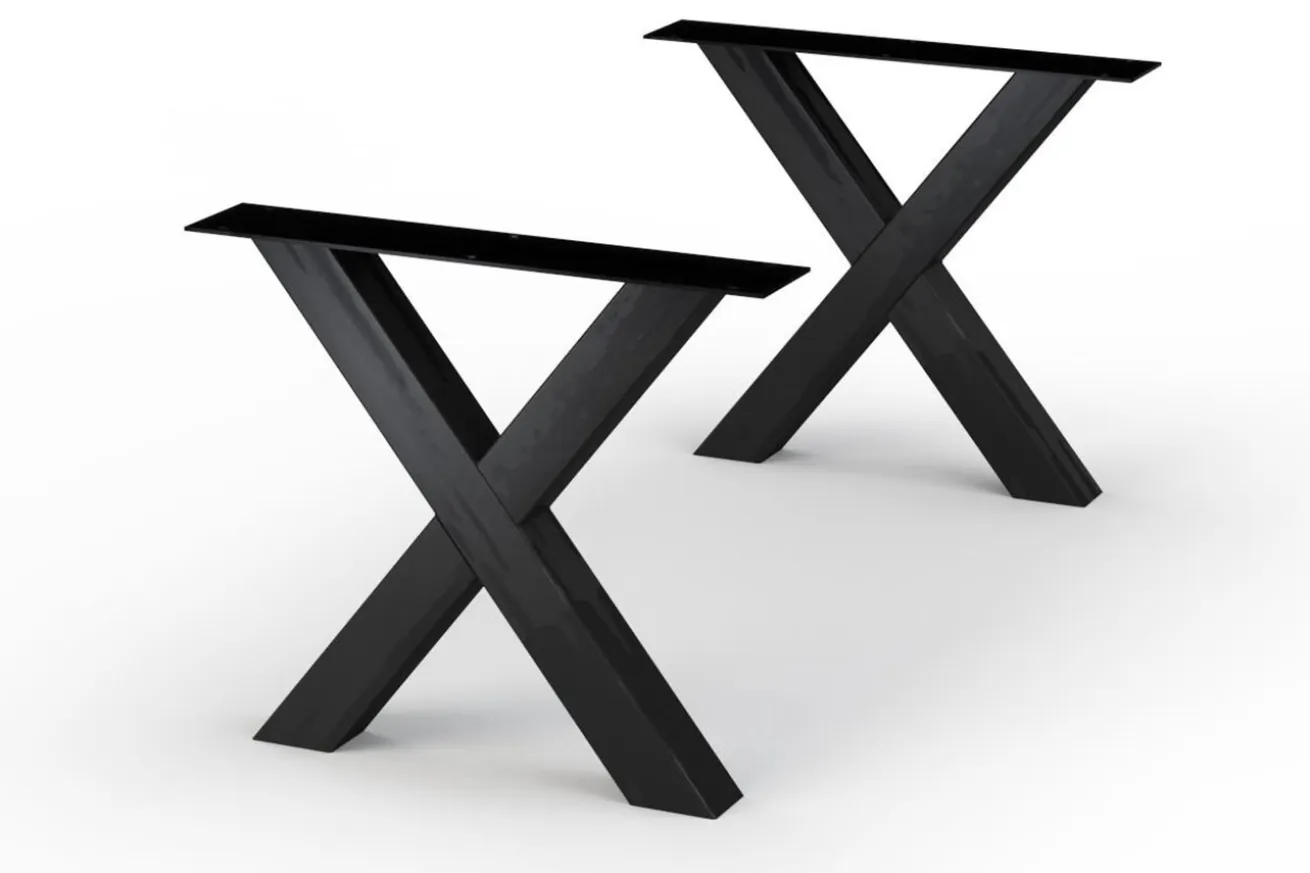 Verleihen Sie Ihrem Esstisch moderne Eleganz und unübertroffene Stabilität mit unserem Tischbein-Set aus schwarzem Metall in markanter X-Form. Dieses Set kombiniert eindrucksvoll Stil und Funktionalität und bietet Ihrem Esstisch eine zeitlose und robuste Grundlage.