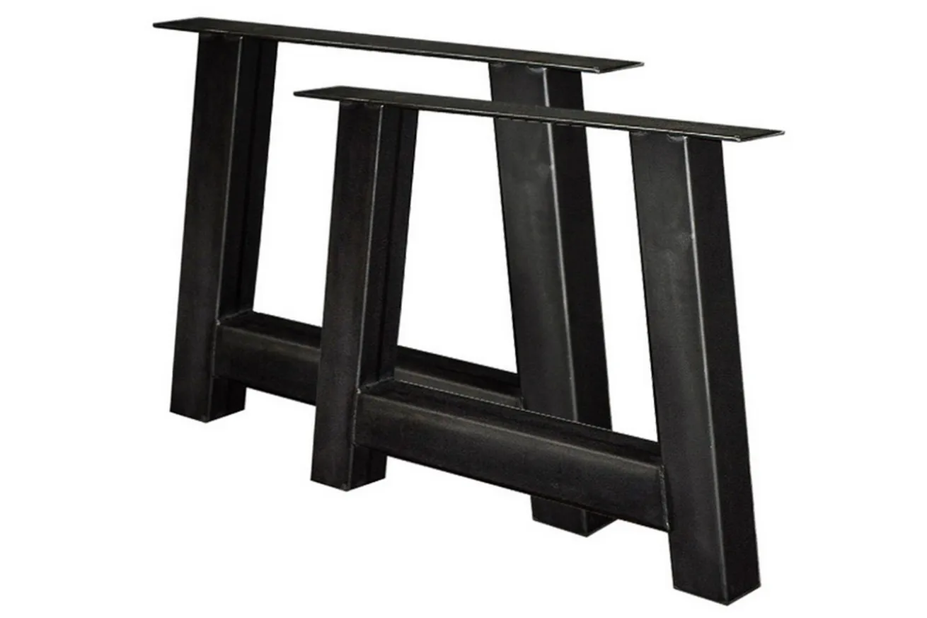 Diese schicken Tischkufen sind aus Eisen und haben sichtbare Schweißnähte. Die Tischgestelle haben die Maße Breite 70-90cm, Tiefe 13-83cm und Höhe 72cm. Jene Tischuntergestelle haben eine A-Form.