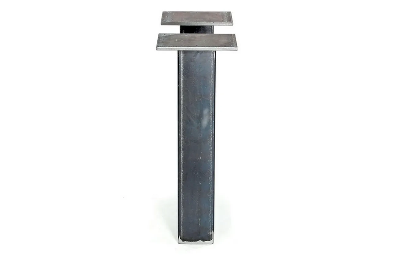 Das Tischgestell besteht aus Roheisen und hat die Maße Breite 51cm, Höhe 70,5cm und Tiefe 8-12cm. Das Stahl kommt zwar in seiner Naturfarbe daher, aber die Oberfläche wurde geölt. Zudem hat das Tischuntergestell, das als Set von uns angeboten wird, hat getrennte Auflageplatten.