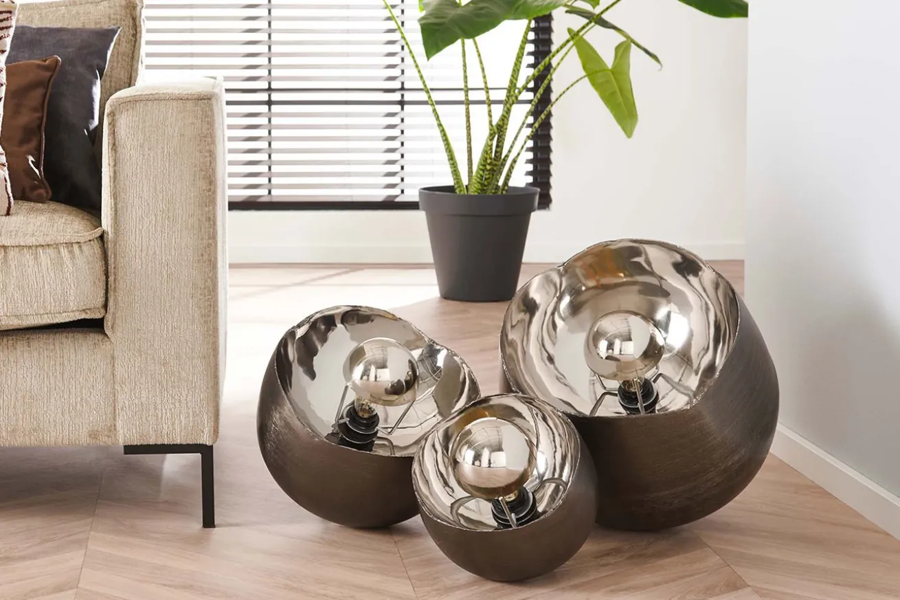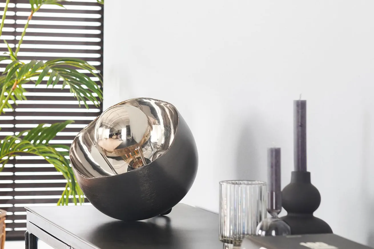Diese ausgefallene Lampe aus Metall in einem schwarz-nickel-Ton matt zieht alle Blicke auf sich! Kein Wunder, denn sie ist ungewöhlich schön. Und passt vor allem auf kleine Beisteller, aber auch als Bodenleuchte kann sie sich ruhig sehen lassen. Mit einem Durchmesser und einer Höhe von je 28cm brauchen Sie auch nicht zu befürchten, dass Sie irgendwie über die moderne Tischlampe stolpern.