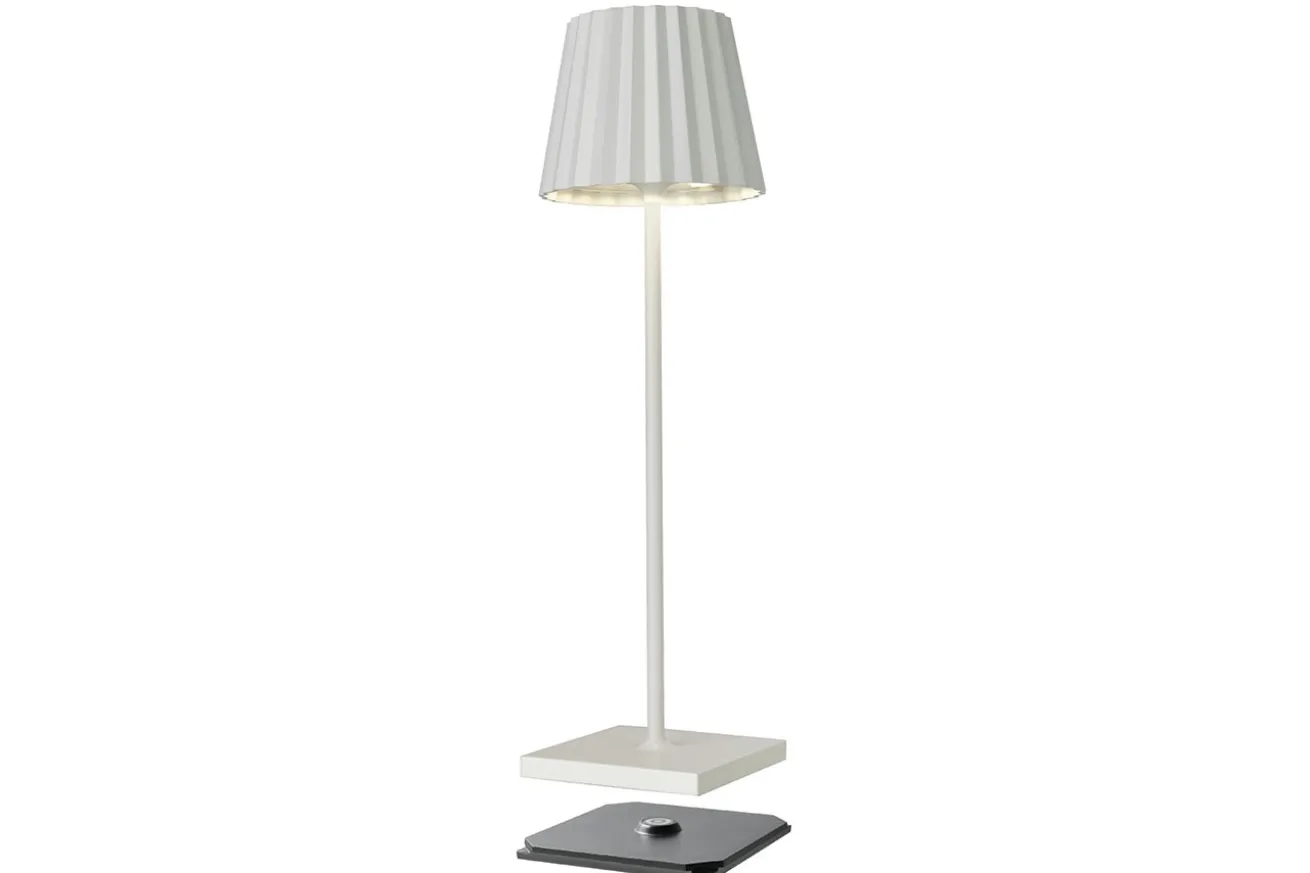 Bei warmen Wetter in den Abendstunen lässt es sich gerne und lange draußen sitzen. Damit man nicht im Dunkeln tiefgründige Unterhaltungen führen muss, sollte eine Lampe her. Sie stehen nicht so auf Girlanden? Wie wäre es mit dieser Tischlampe aus Aluminium in Weiß, die vor allem für den Garten- und Terrassenbereich kreiert wurde. Draußen darf sich das Leben nun auch im modernen Stil abspielen. Die Lampe hat zwei Leuchtstufen, ist daher dimmbar und eine Akku Laufzeit von ca 12. Stunden. Zudem besitzt sie eine Ladestation mit Kabel.